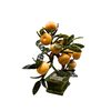 This tree shows a bonsai tree with fruit. The leaves and base are made of green jade stone, the fruits are made of yellow jade stone.