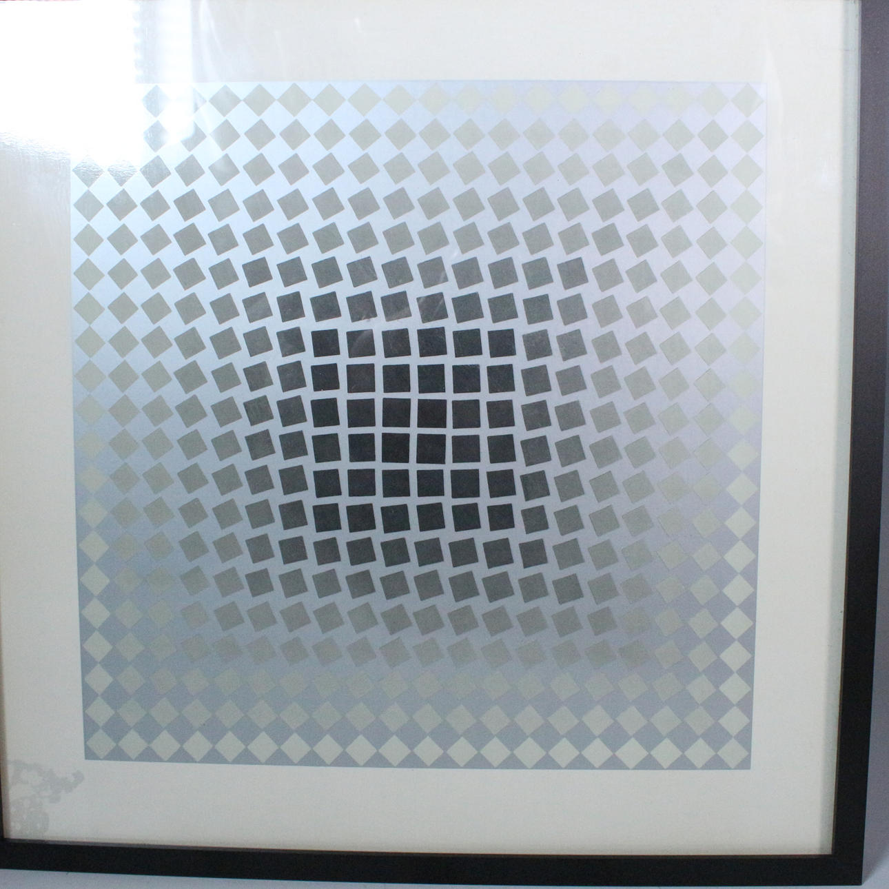 Print, “Cta-106-Rg” based on a design by Viktor Vasarely, framed behind glass.