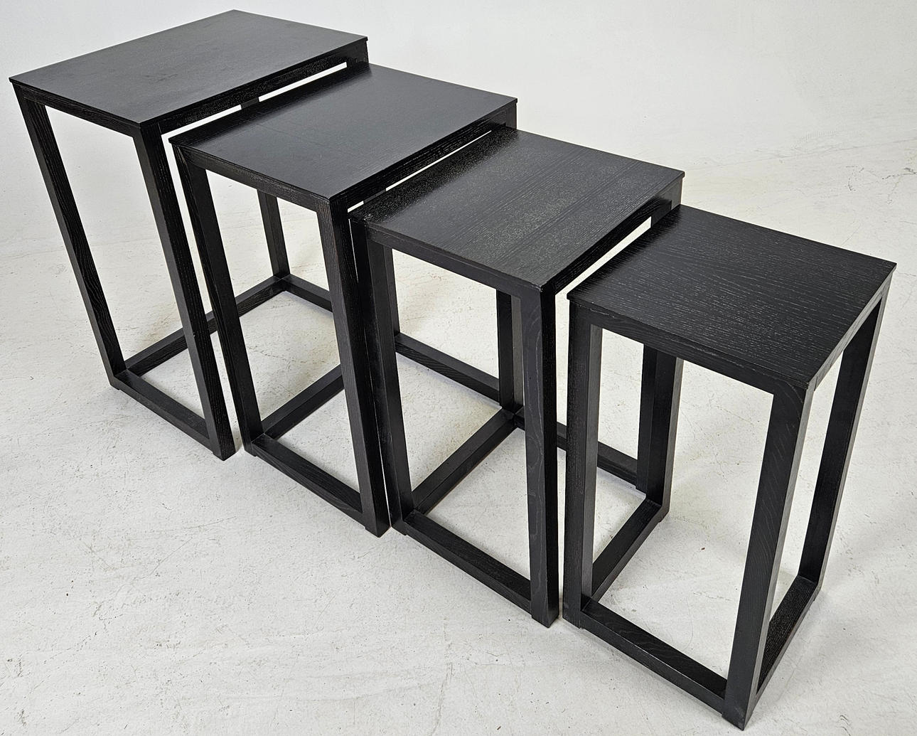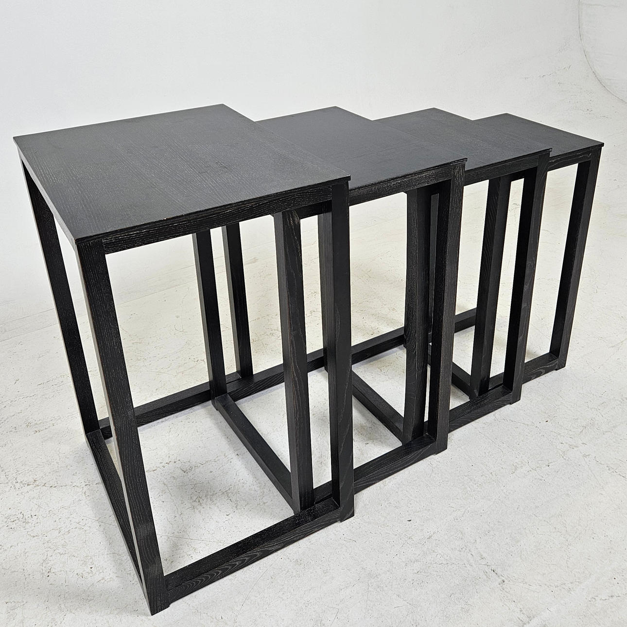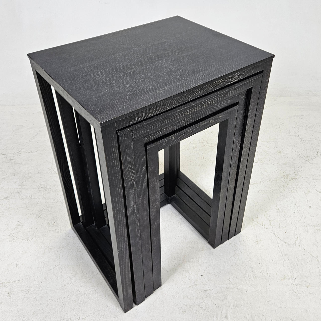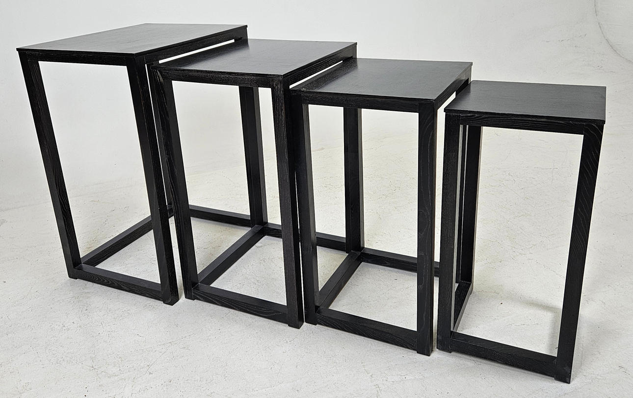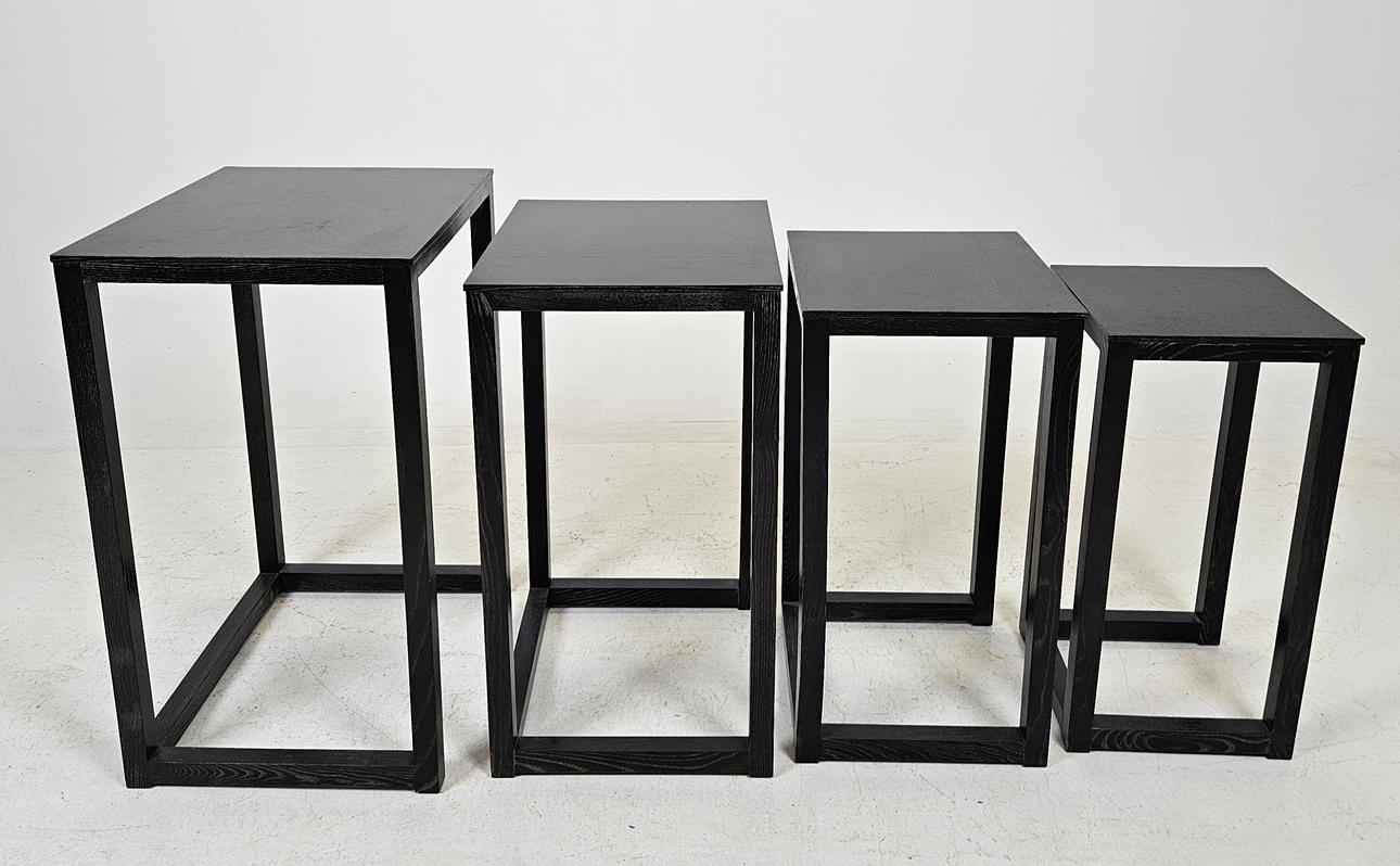 Stained wood. Larger table, length approx. 50, width 40, height 70 cm.