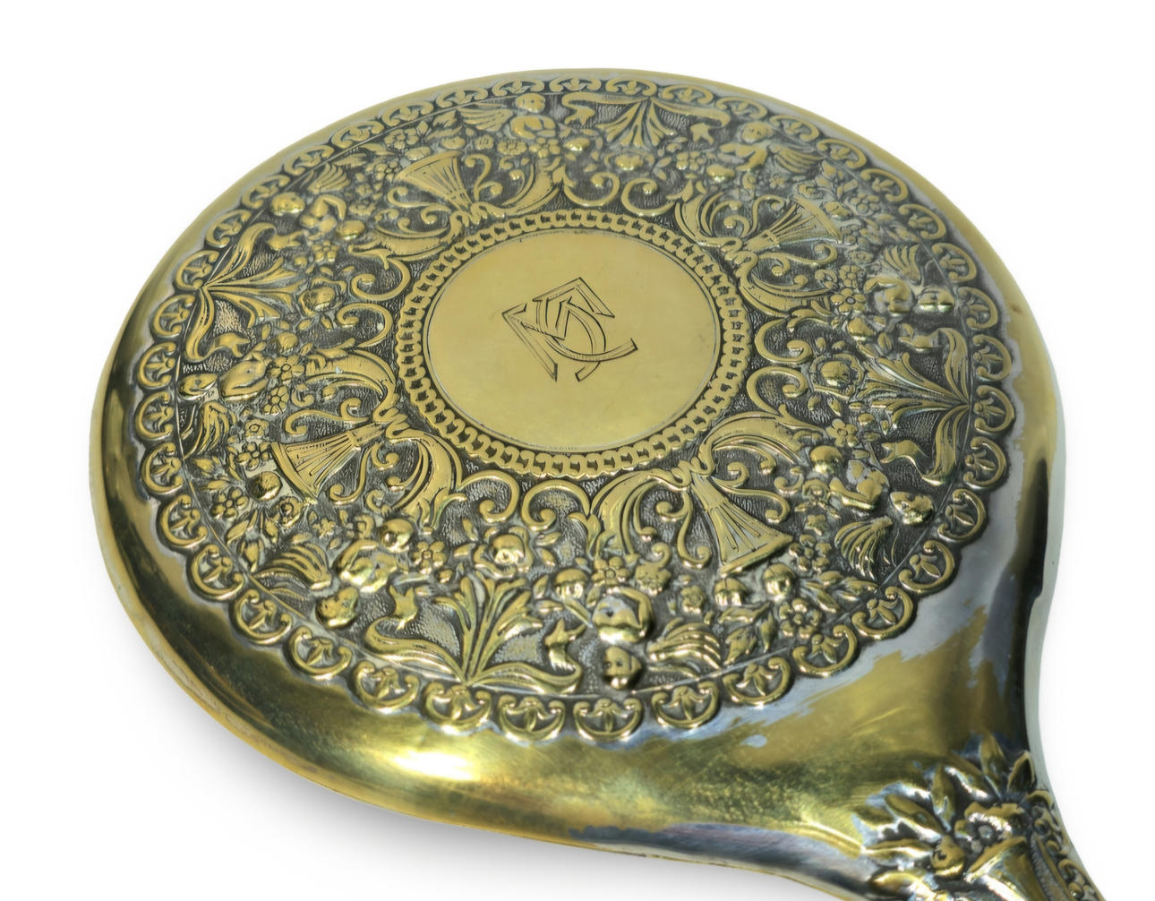Vanity mirror in silver metal.