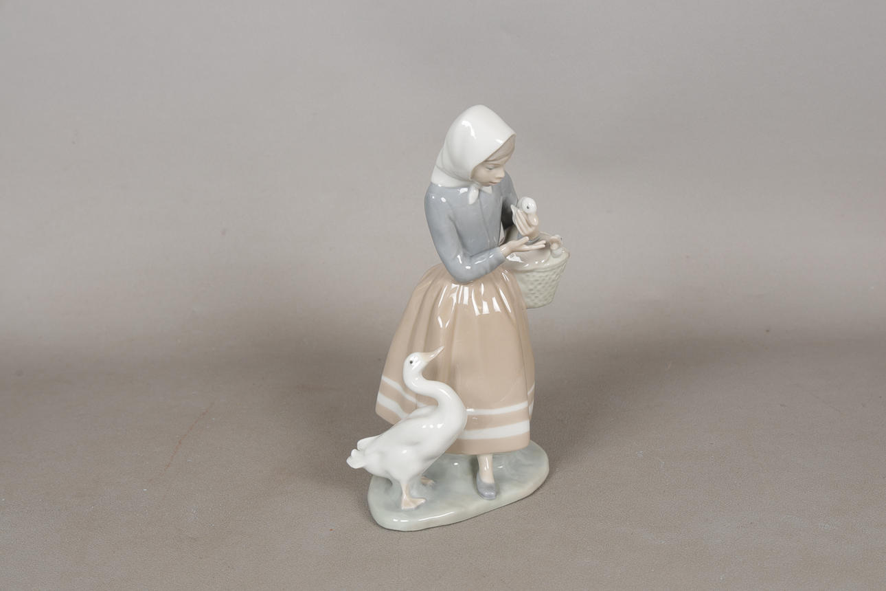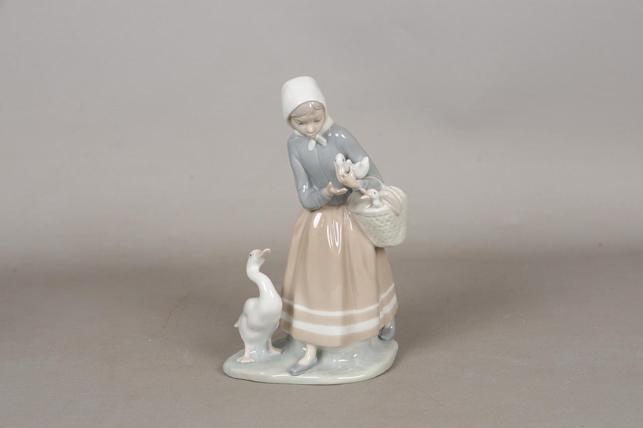 The figurine holding a basket with two ducklings, 23cm tall, with box.