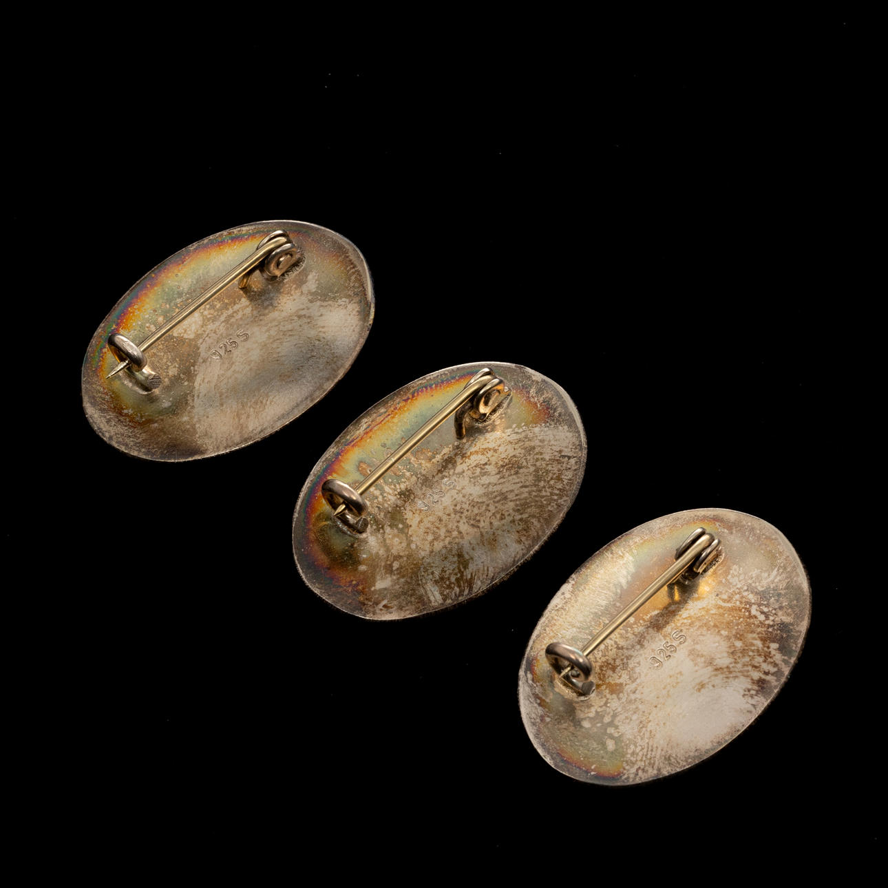 BROOCHES, 3 pcs, Sterling Silver, Enamel decor.