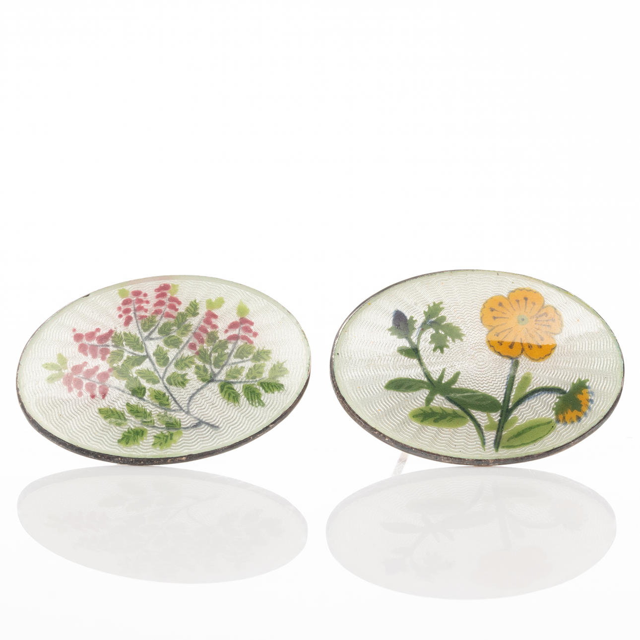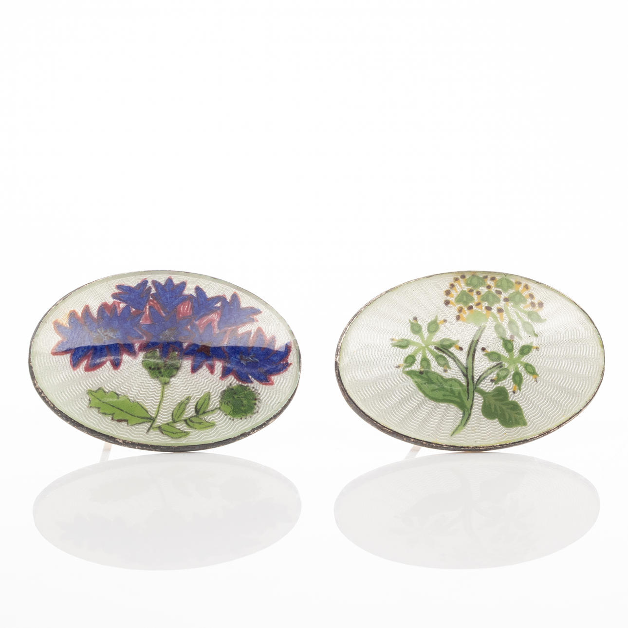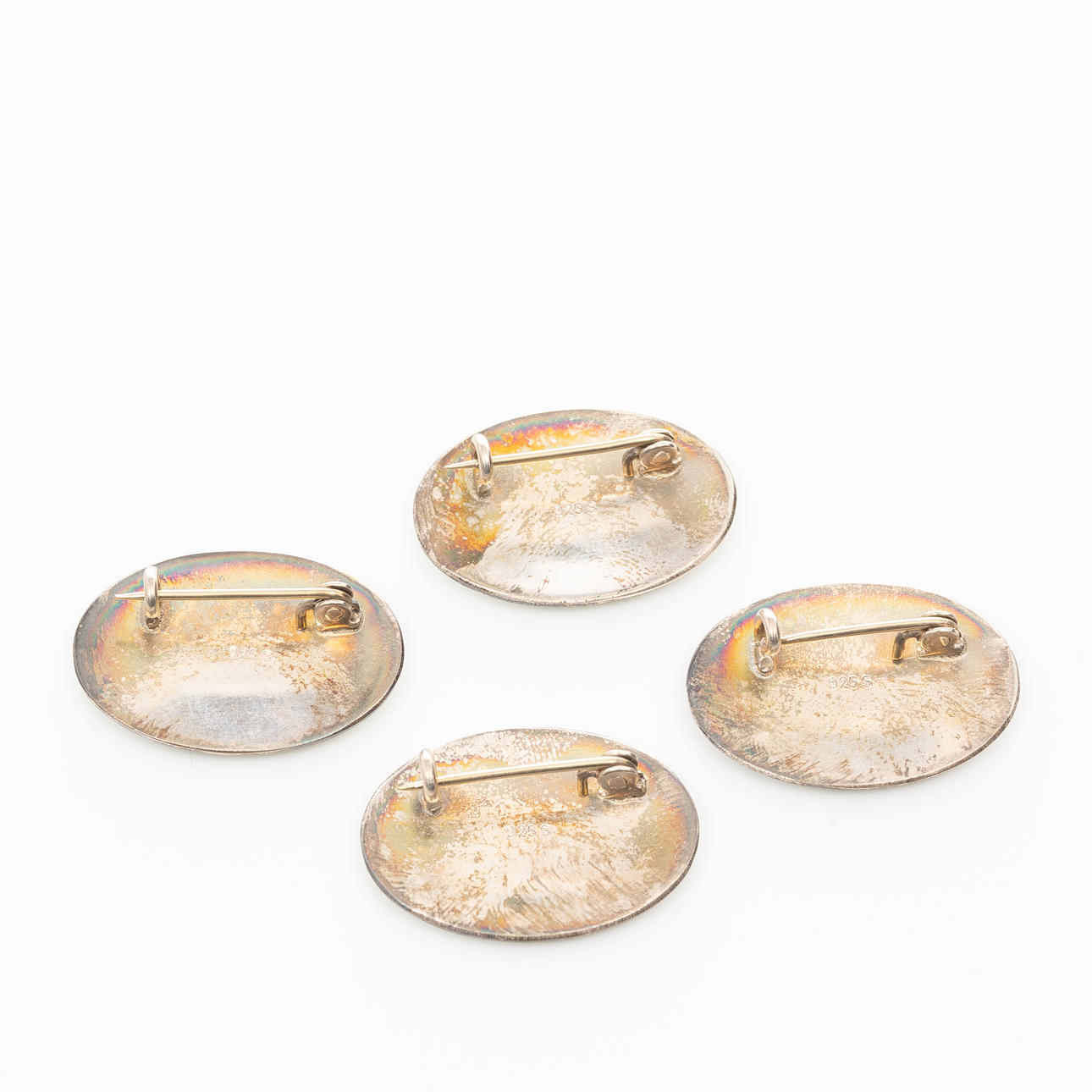 Brooches, 4 pcs, Sterling silver, Enamel decor.