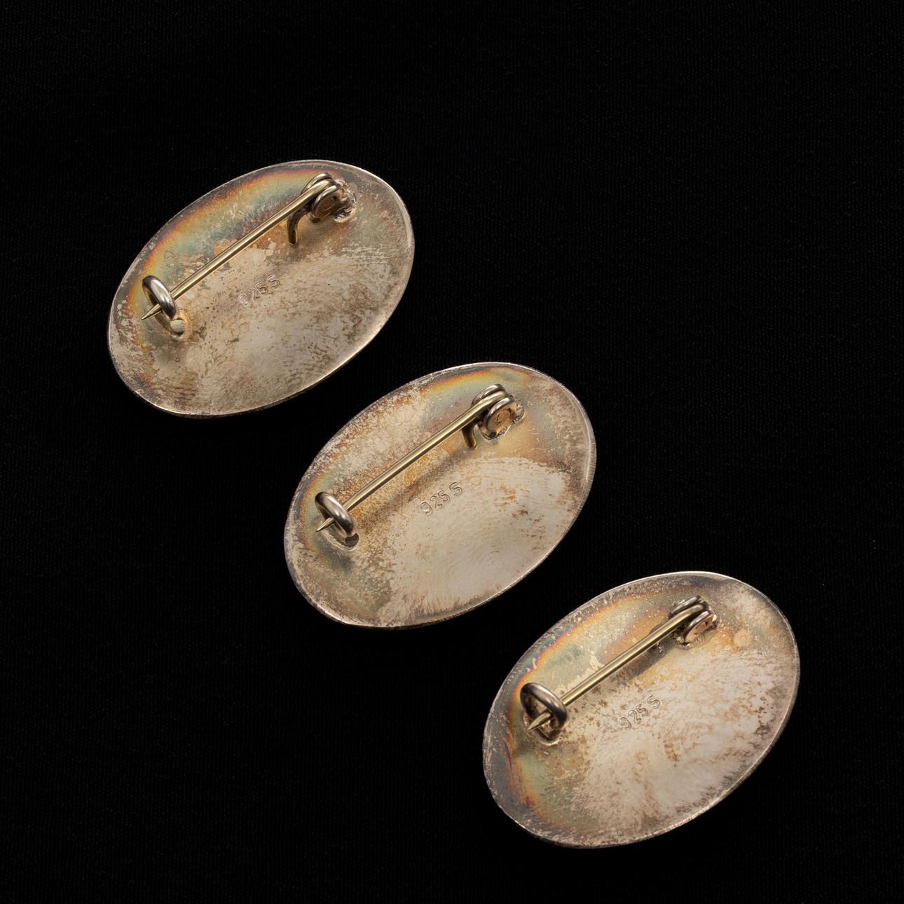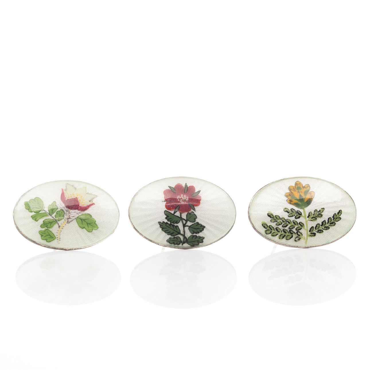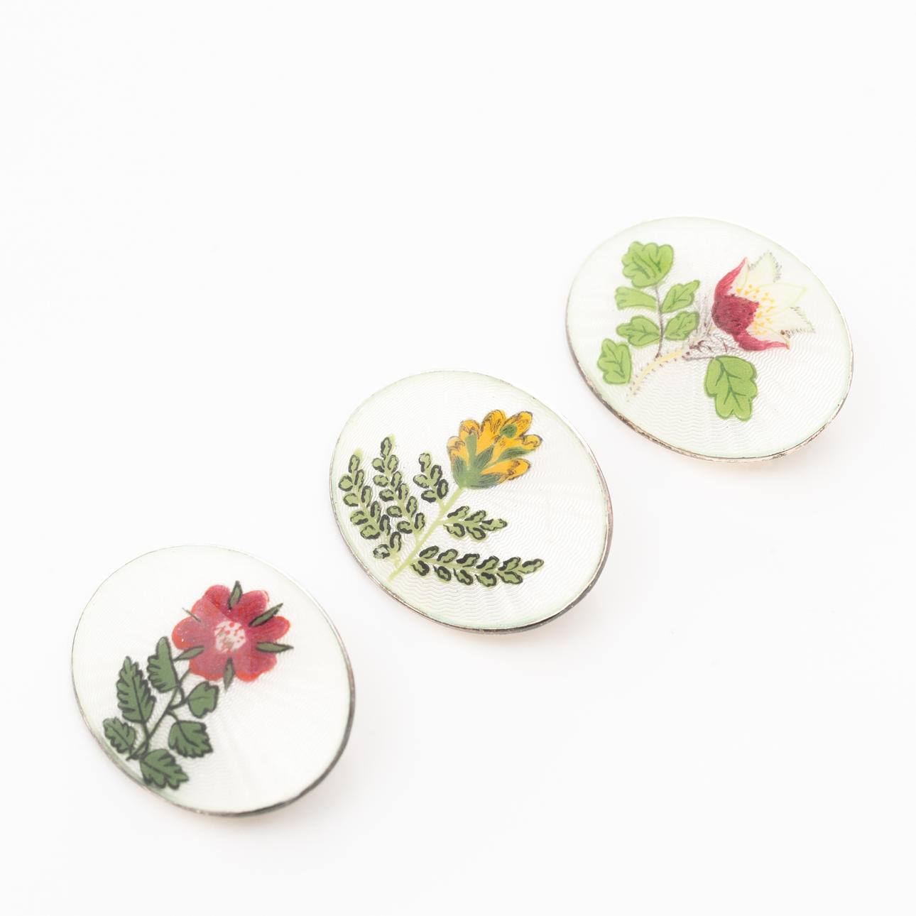 BROOCHES, 3 pcs, Sterling Silver, Enamel decor.
