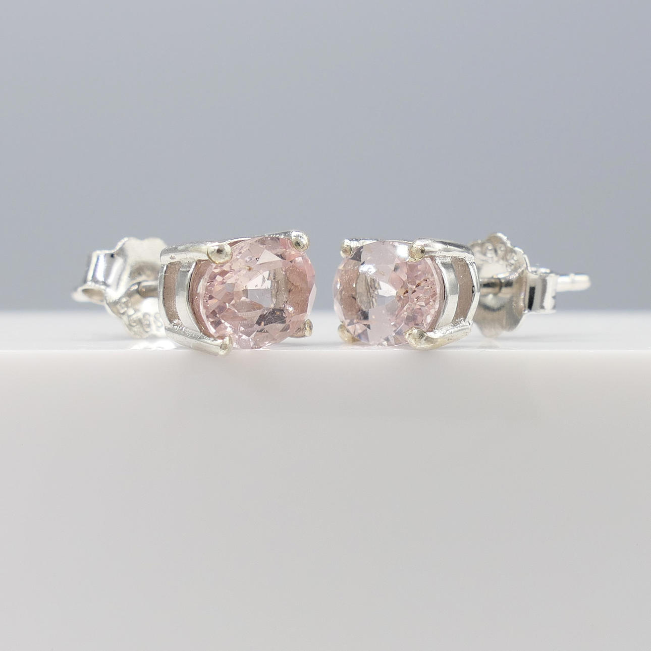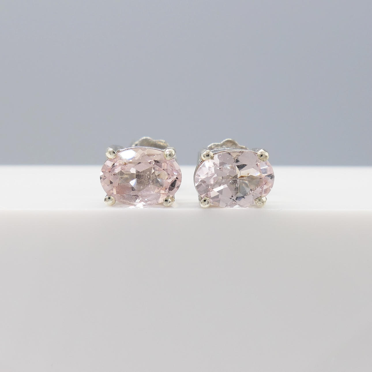 Morganites: natural; 1.20ct total approx; studs: 7 x 5mm each; pale pink tone