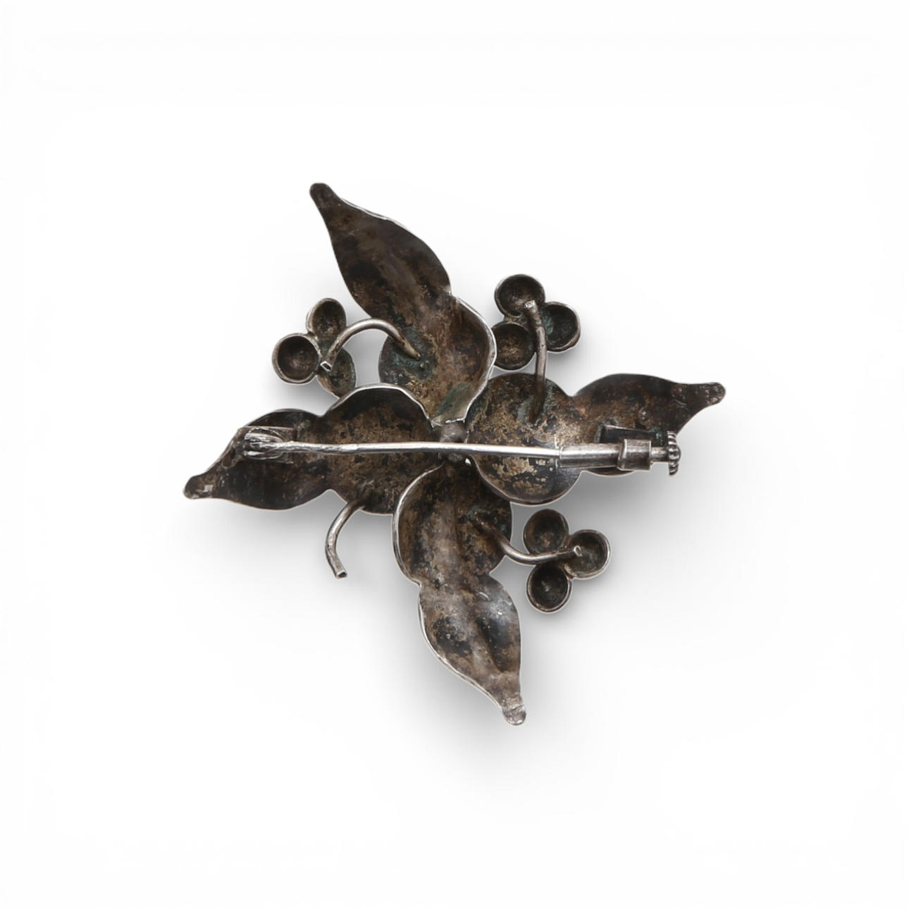 4871103. Floral brooch and ring in silver, circa 1940.
