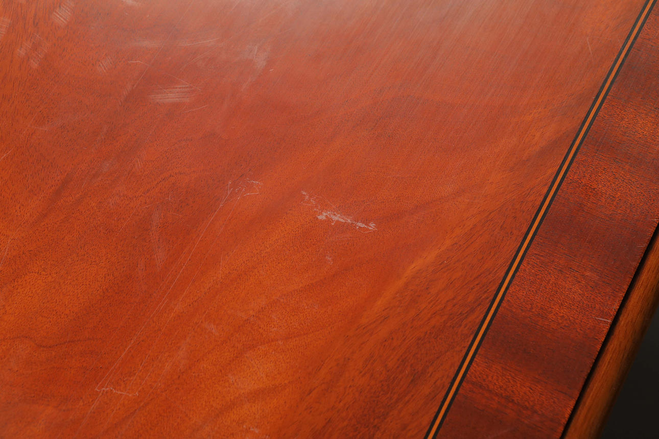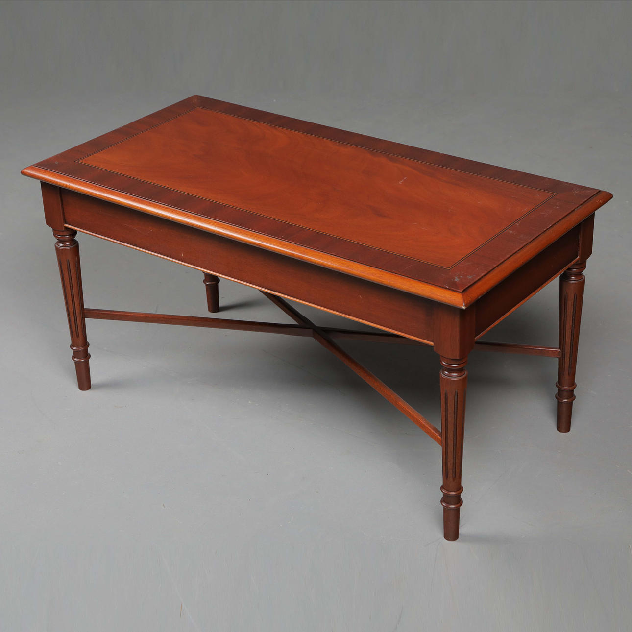 MAHOGANY AND CROSBANDED COFFEE TABLE.