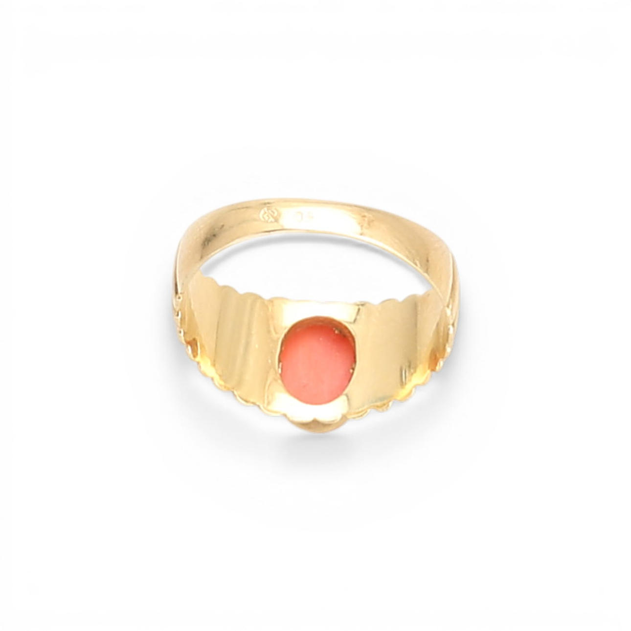 18K gold and oval cabochon cut “corallium” coral. Size 15/55. 3.5 gr.