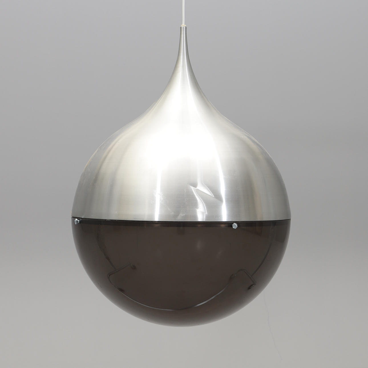 Upper section of aluminium and lower section of dark-tinted plastic. Labelled. Diameter of shade approx. 50, height 70 cm.
