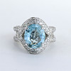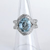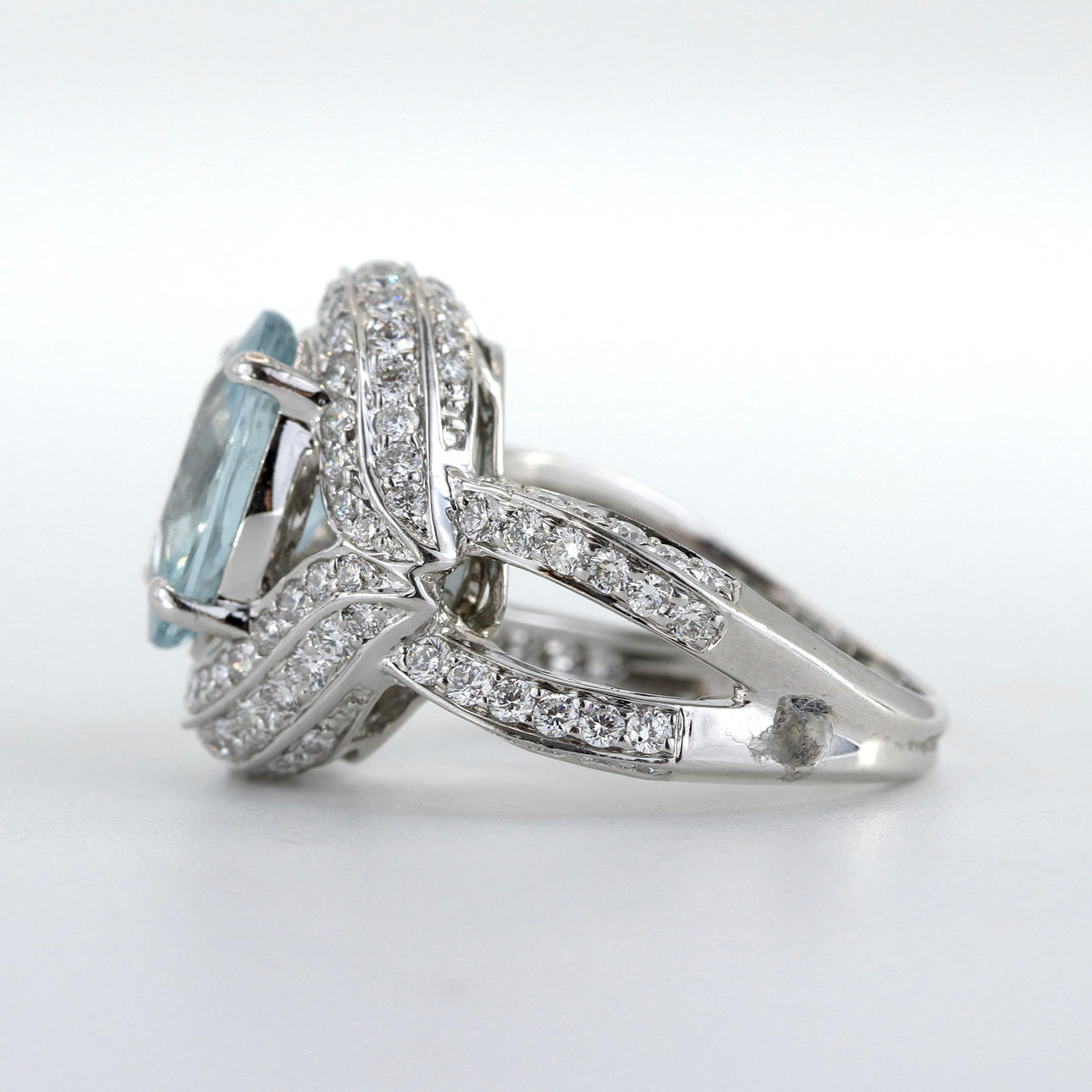 A heavy 18ct white gold, etched 750, ring set with and aqua marine and 1.92 ct of diamonds. UK ring size N.5.