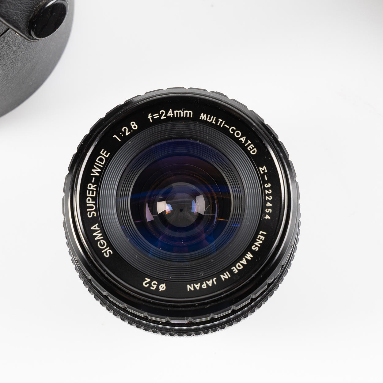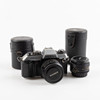 Lenses 4 pcs and 1 on camera, heights approx. 6-13 cm.