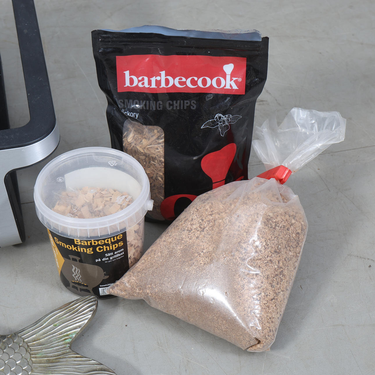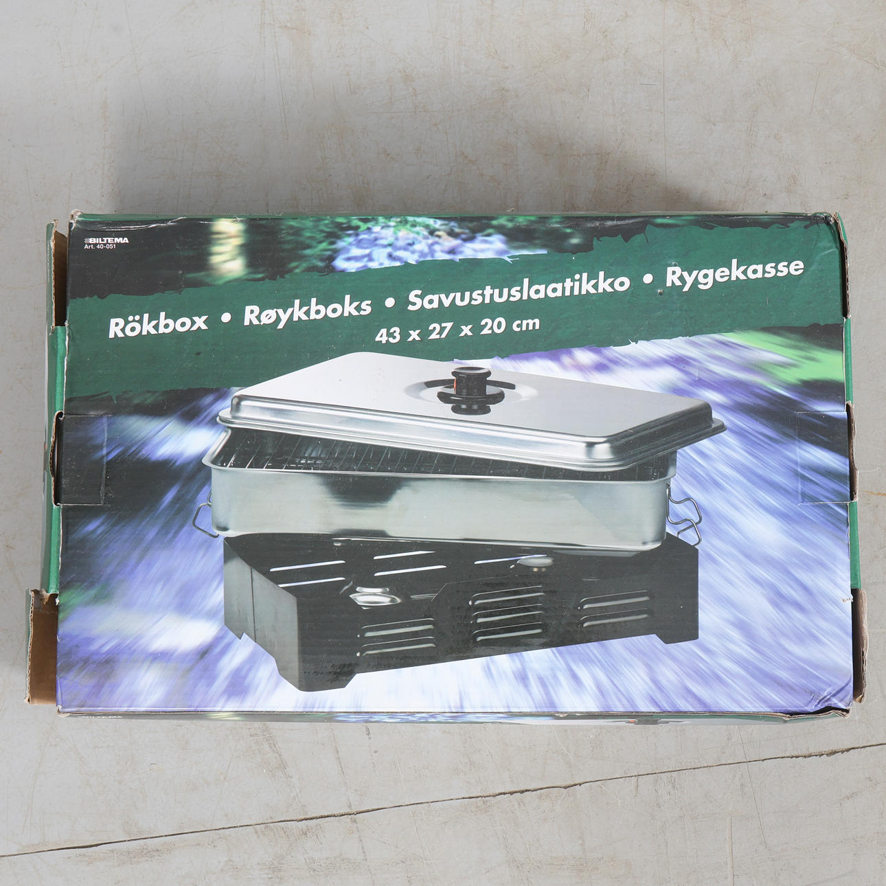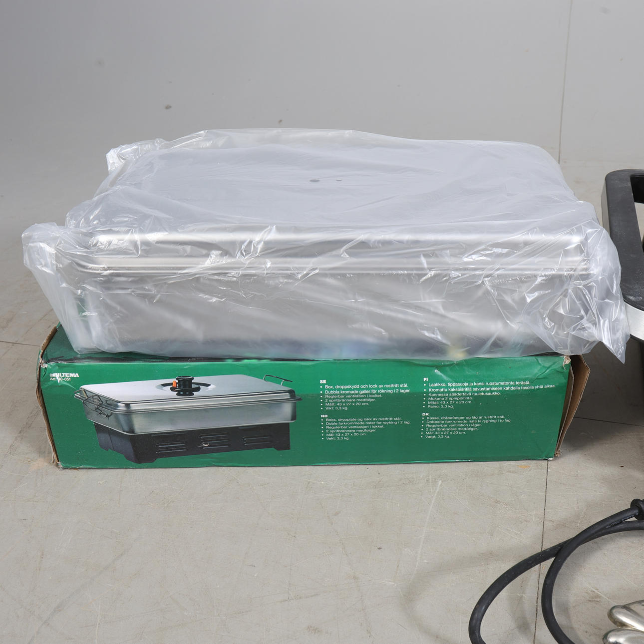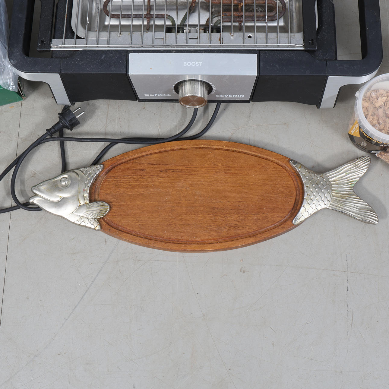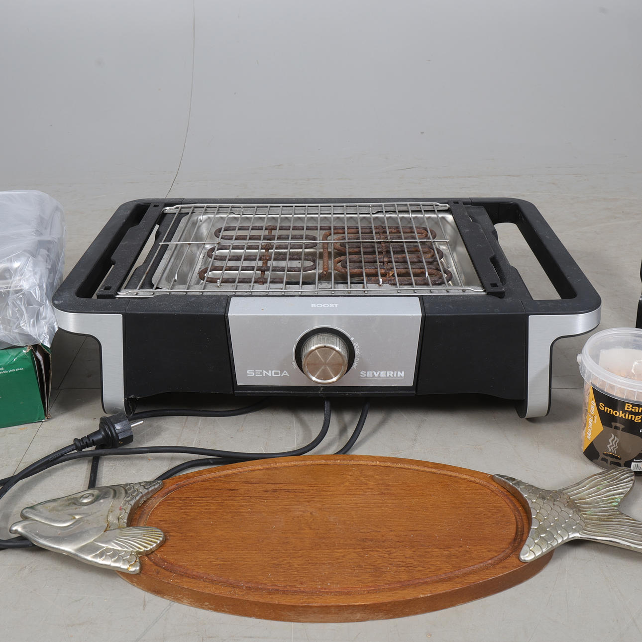 TABLE GRILL, SMOKE BOX, FISH DISH AND ACCESSORIES Size banana box.