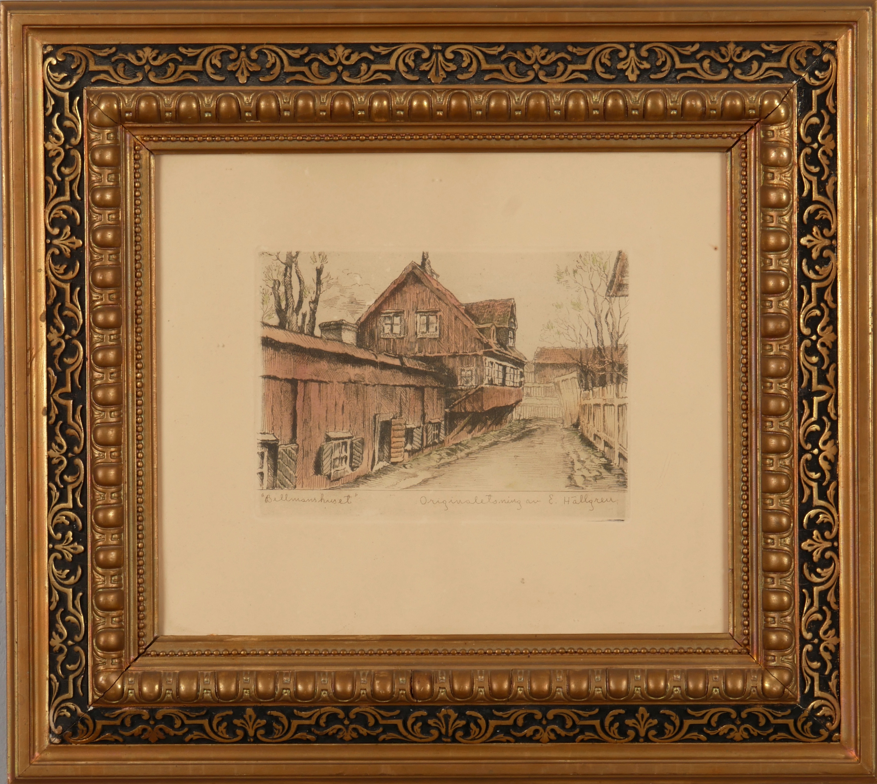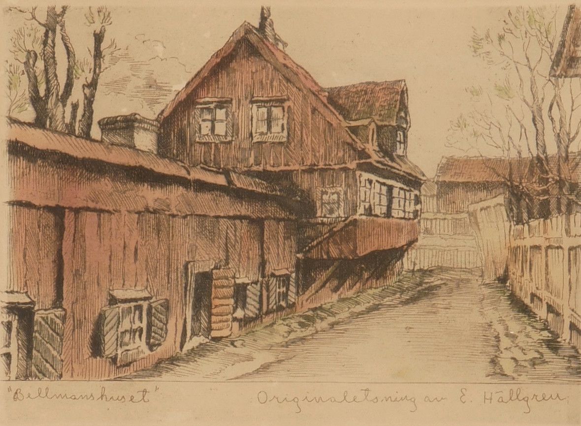 4874322. ERNST HÄLLGREN. “Bellmanhuset”, etching, signed.