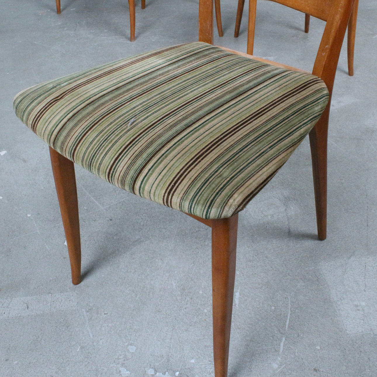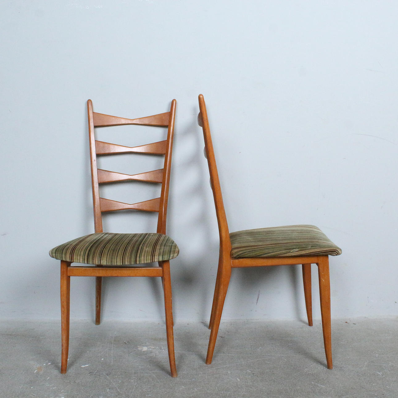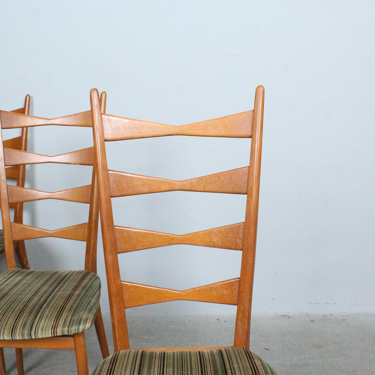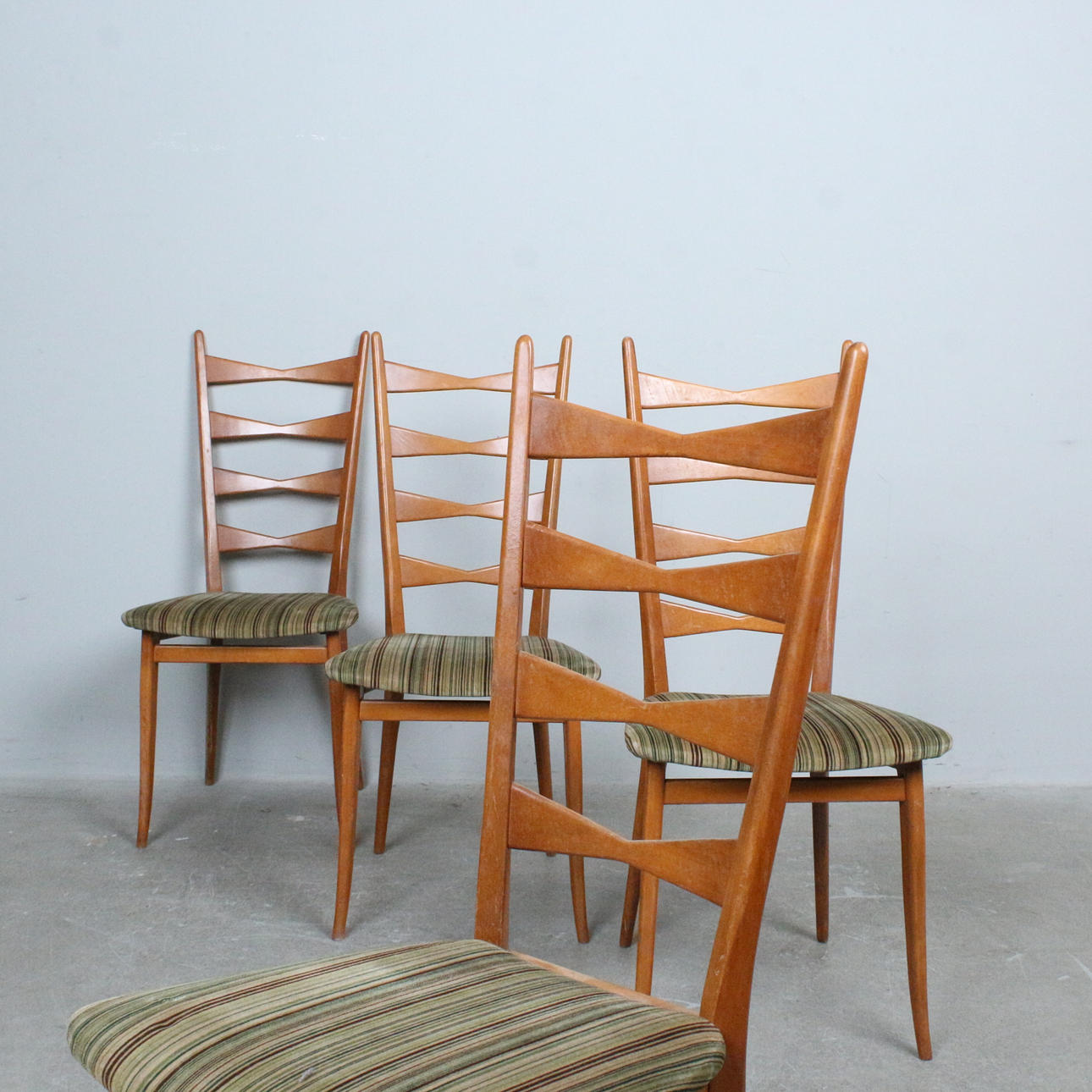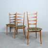 Four high-back chairs, made of oak with fabric upholstery in the 1960s.