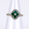4874573. 18CT EMERALD AND DIAMOND RING.