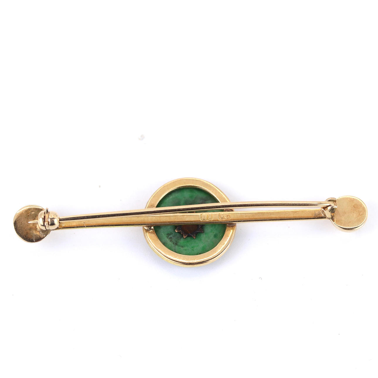 4874638. VINTAGE 18CT CHINESE JADE BROOCH.