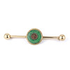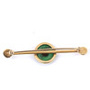 A vintage 18ct gold and jade brooch with centre character motif. L 5 cms.