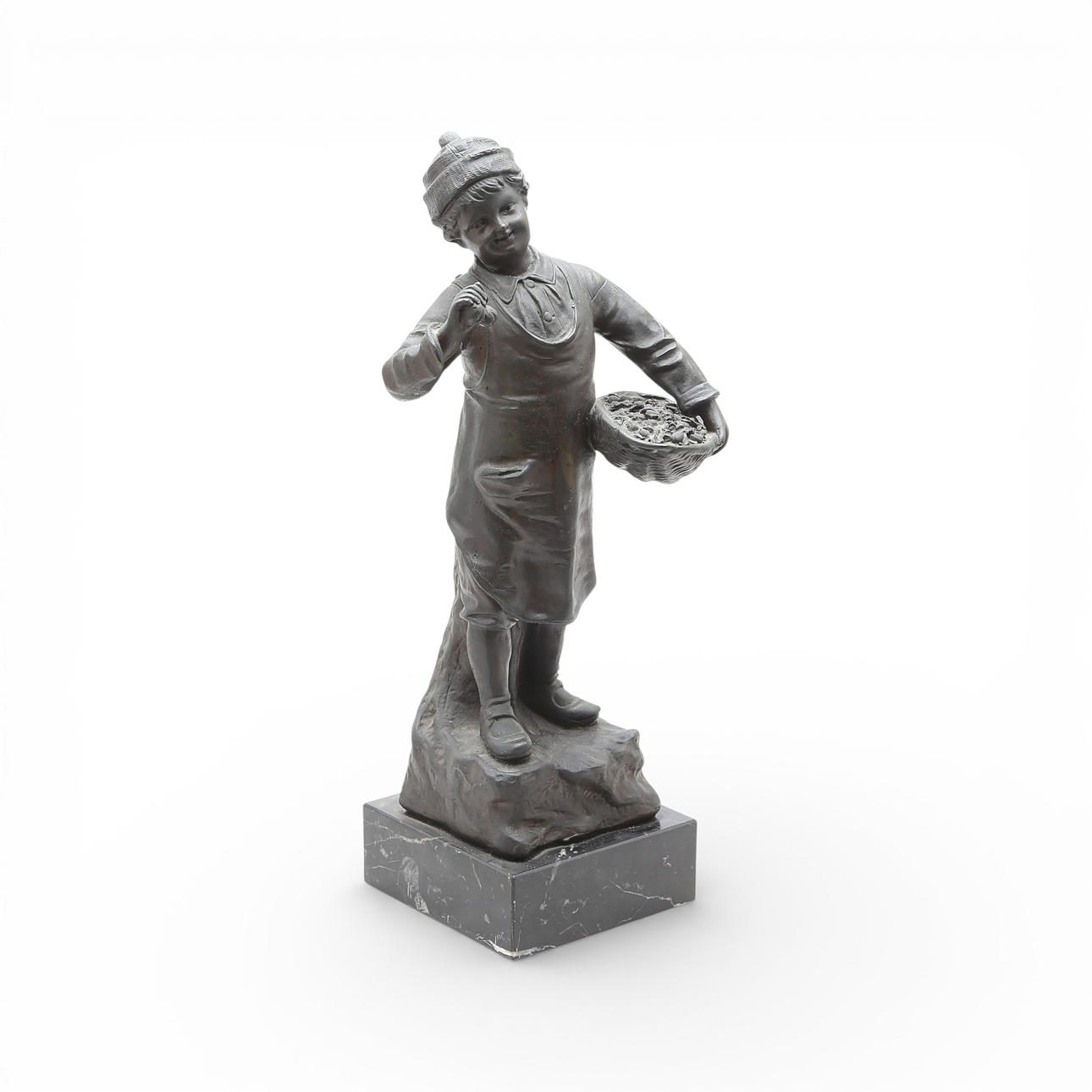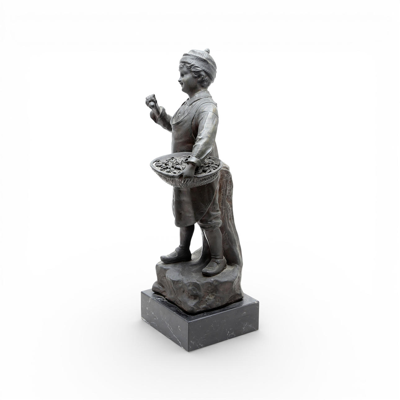 Dark patina bronze sculpture with veined black marble stand