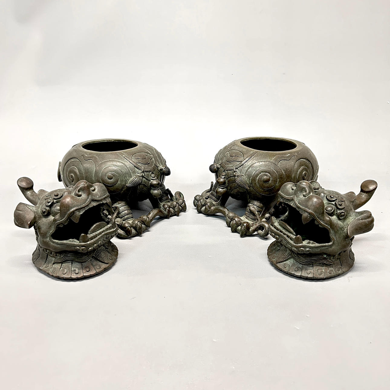 CHINESE BRONZE LIDDED CENSERS.