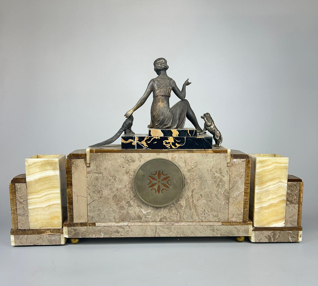 4875333. THREE PIECE ONYX/ MARBLE ART DECO GARNITURE.
