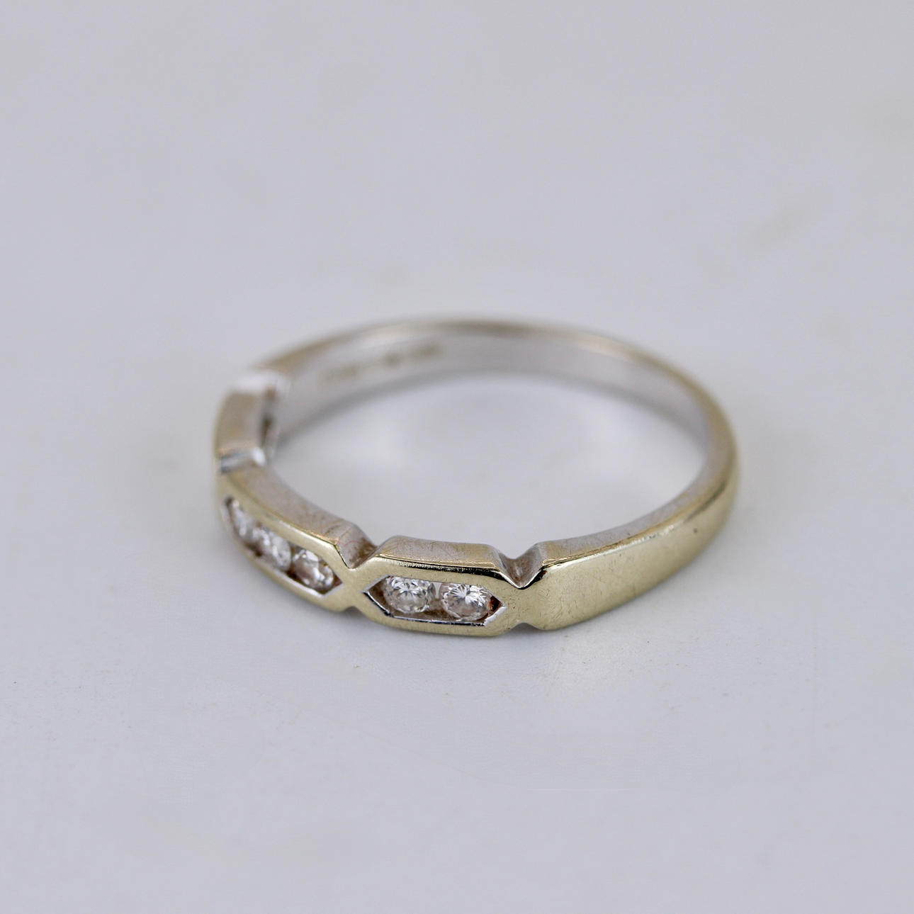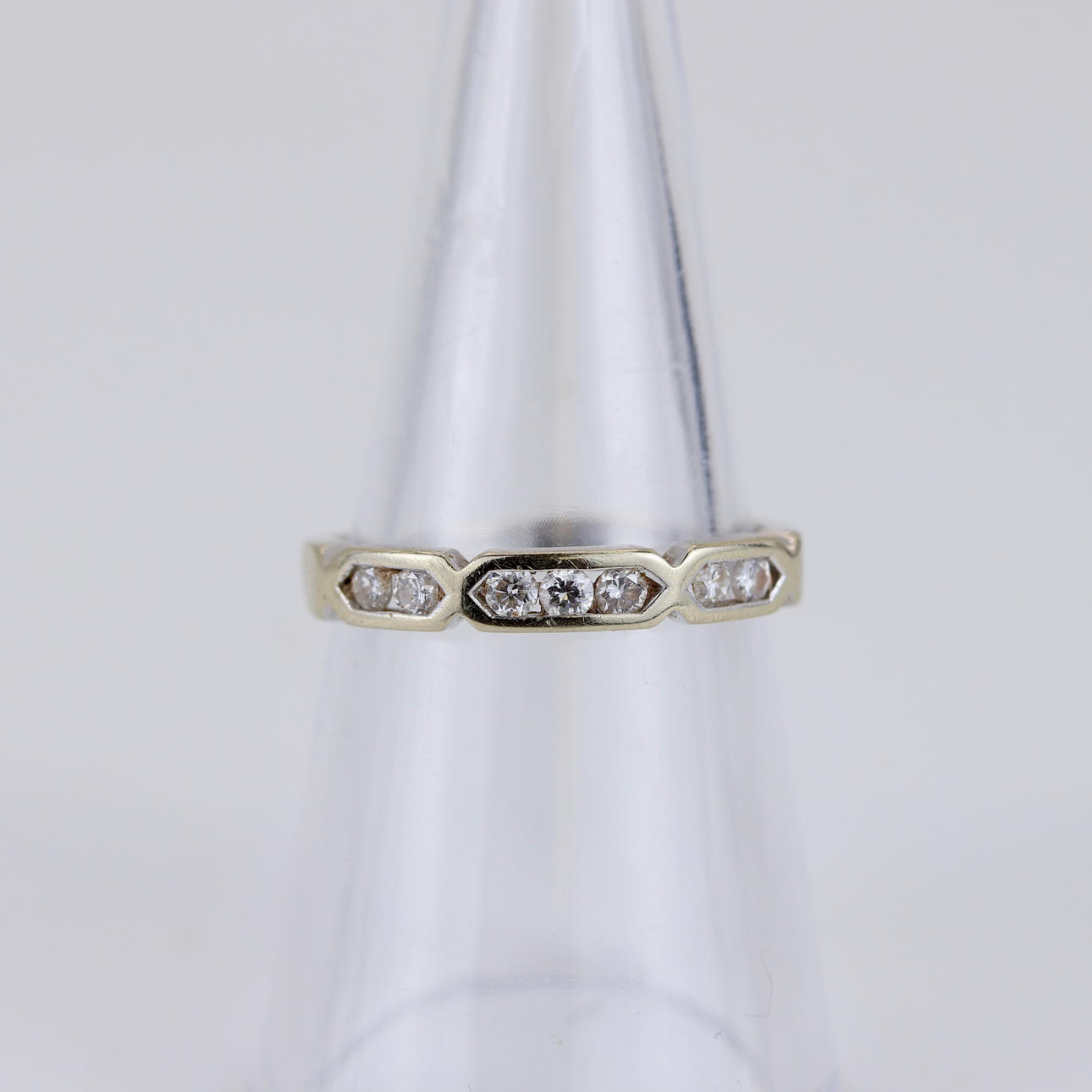 18CT WHITE GOLD DIAMOND SET BAND RING.
