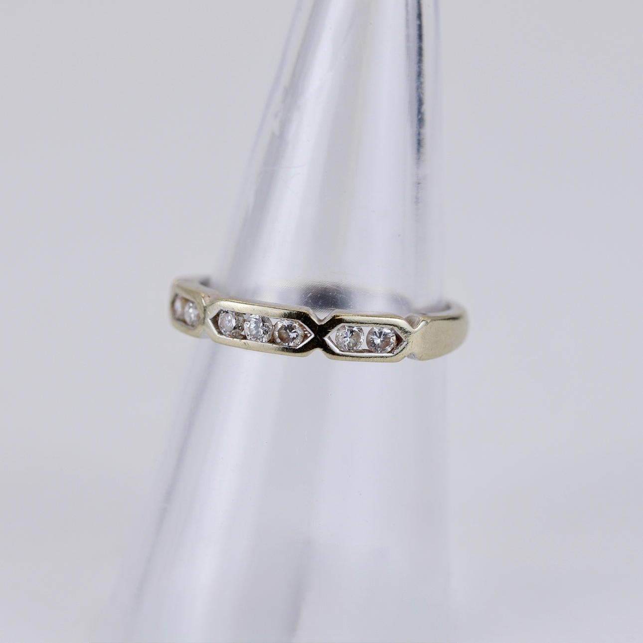 An 18ct white gold band ring set with diamonds. Total weight: 2.9g