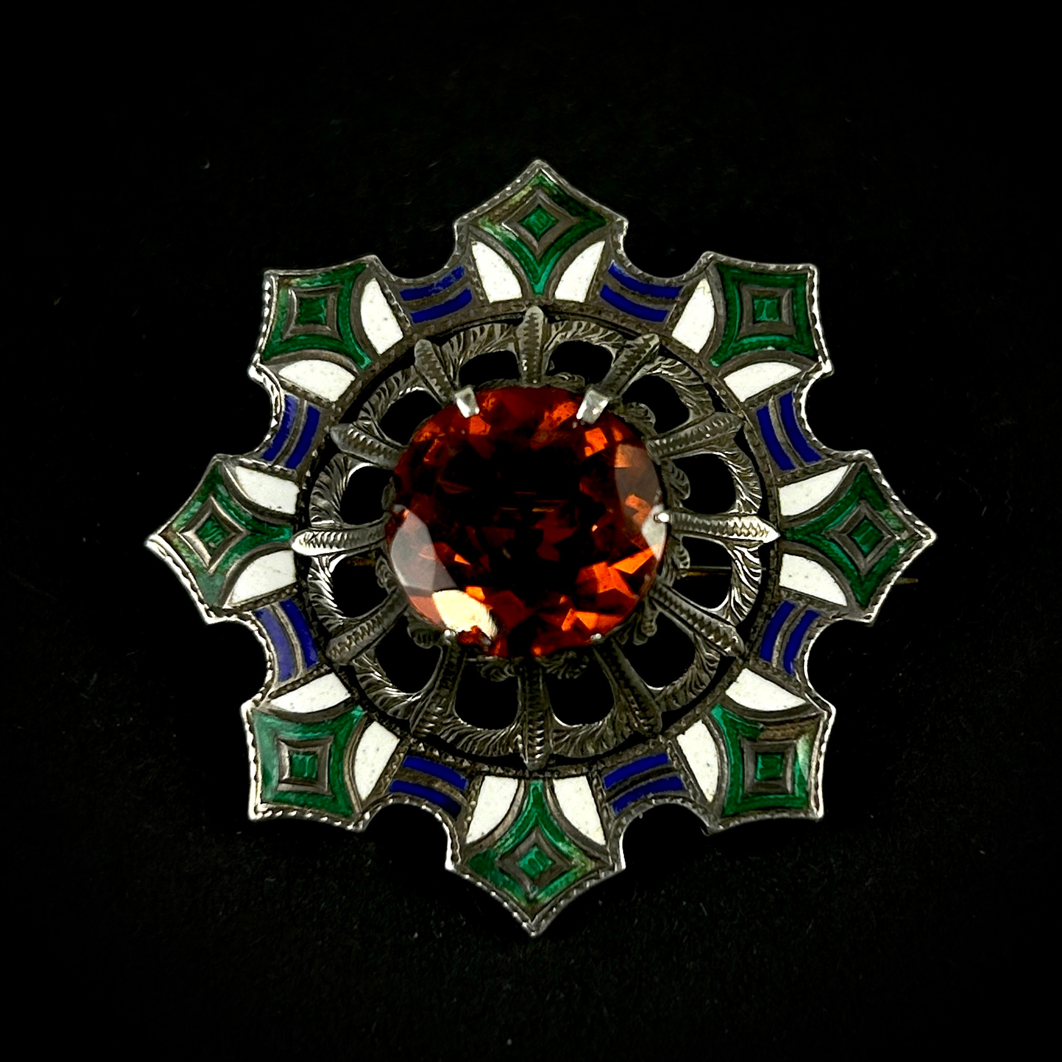 4875554. WHITE METAL & ENAMEL BROOCH.