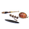 An early 19thC Grand Tour rose metal lava cameo brooch W. 4.5 cms, with a jet brooch, banded agate brooch and a button hook with banded agate handle, L. 8.5 cms.