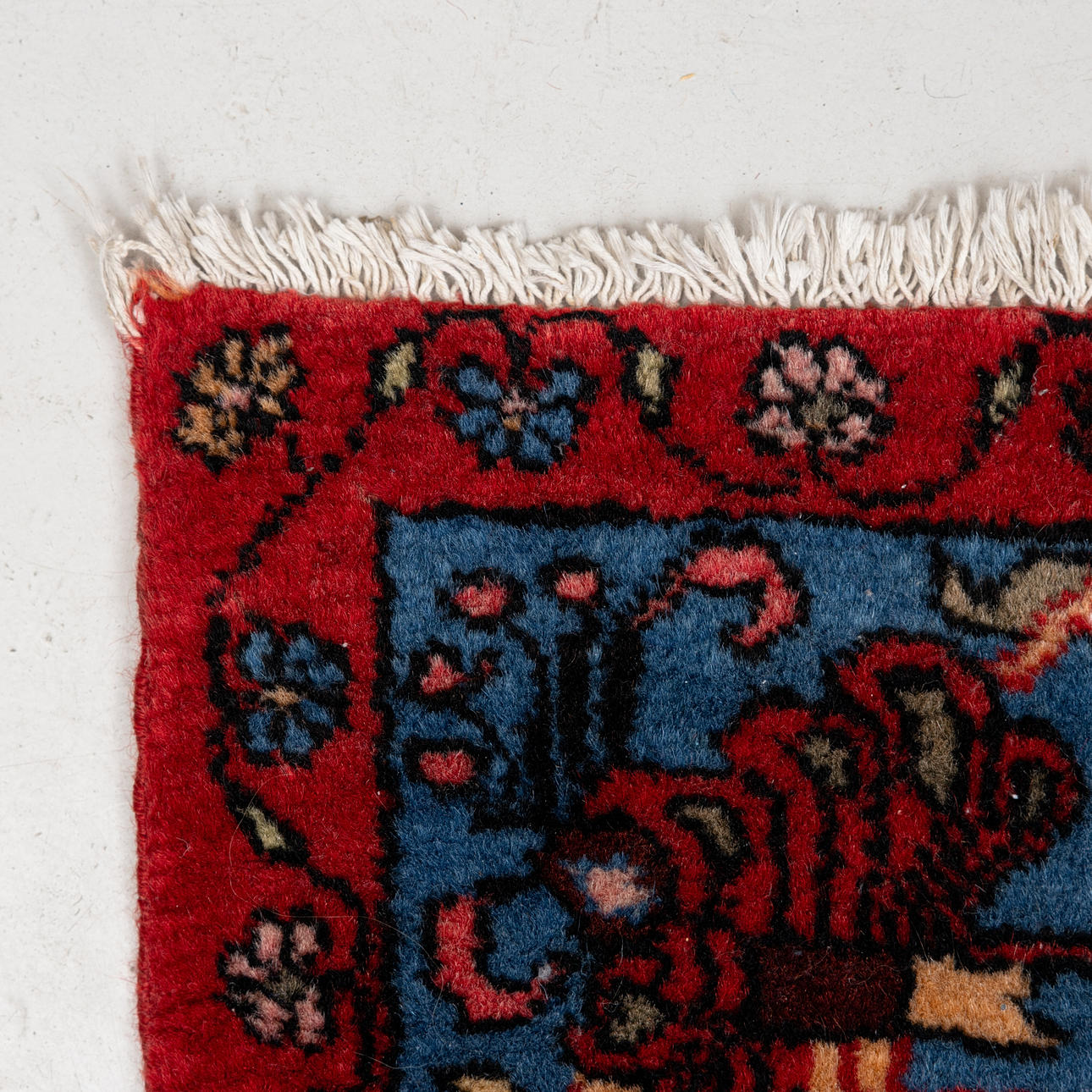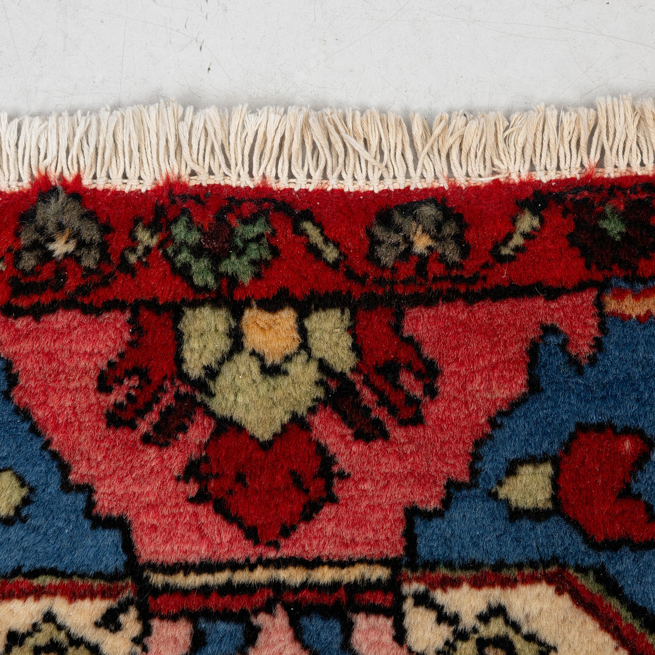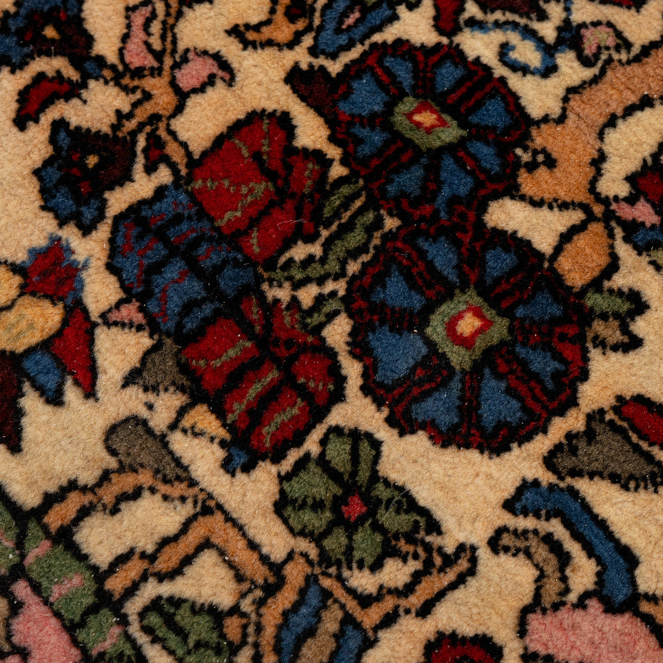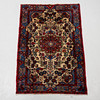 Beige base with polychrome floral stylized pattern, medallion, approx. 231x145 cm.