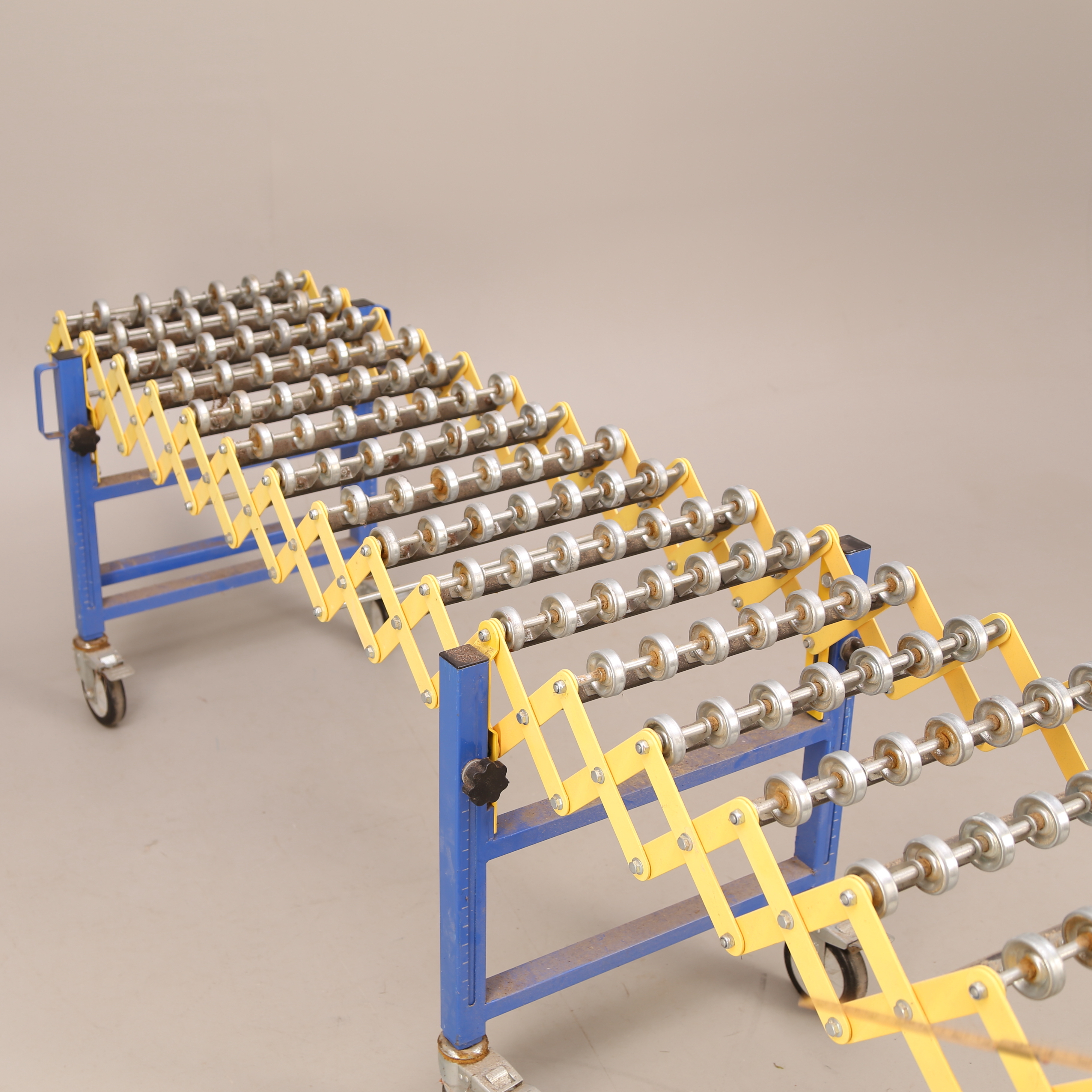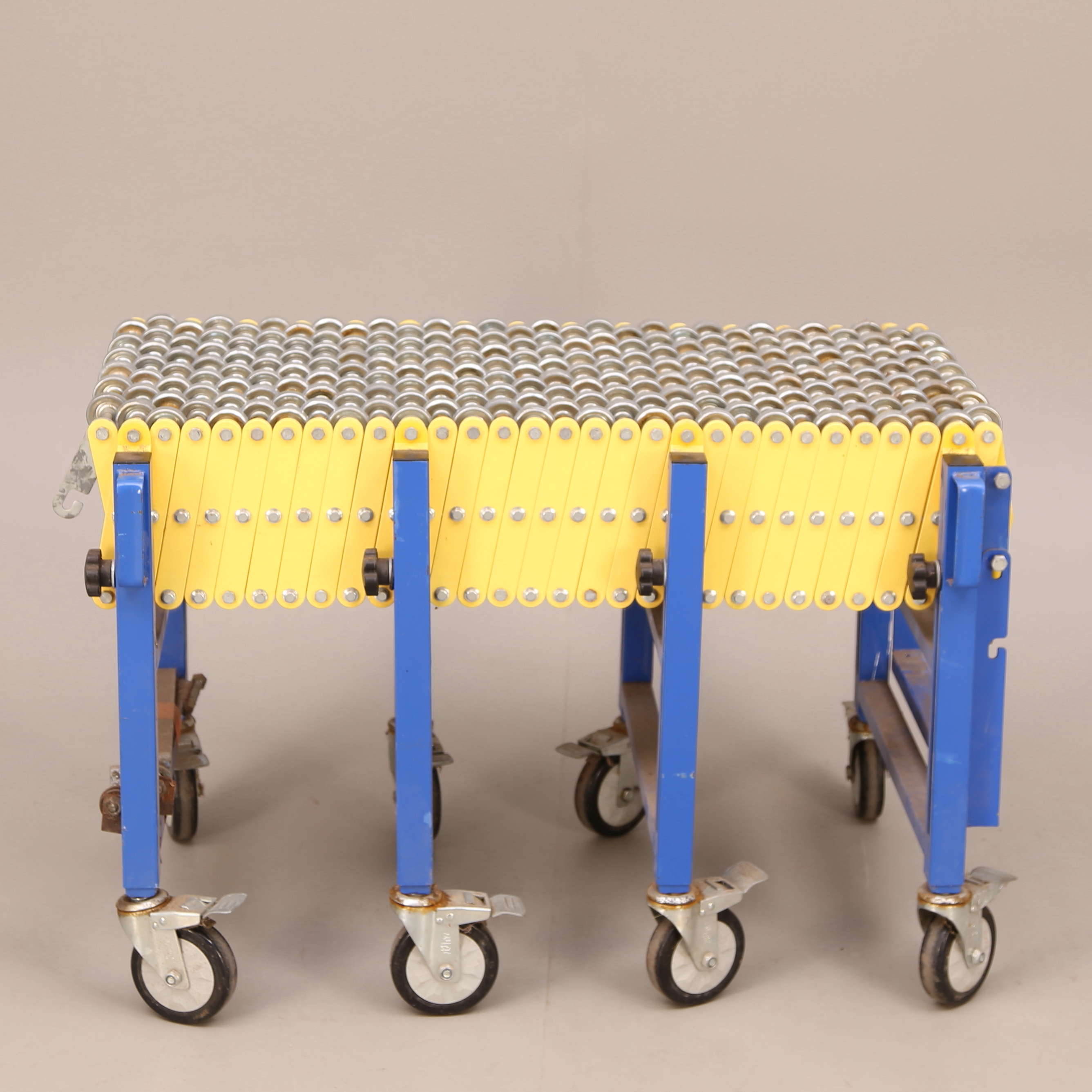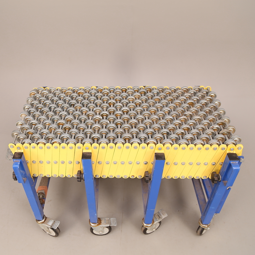487790. ROLLER TABLE, blue-yellow, raise/lower, lockable wheels, 2000s.