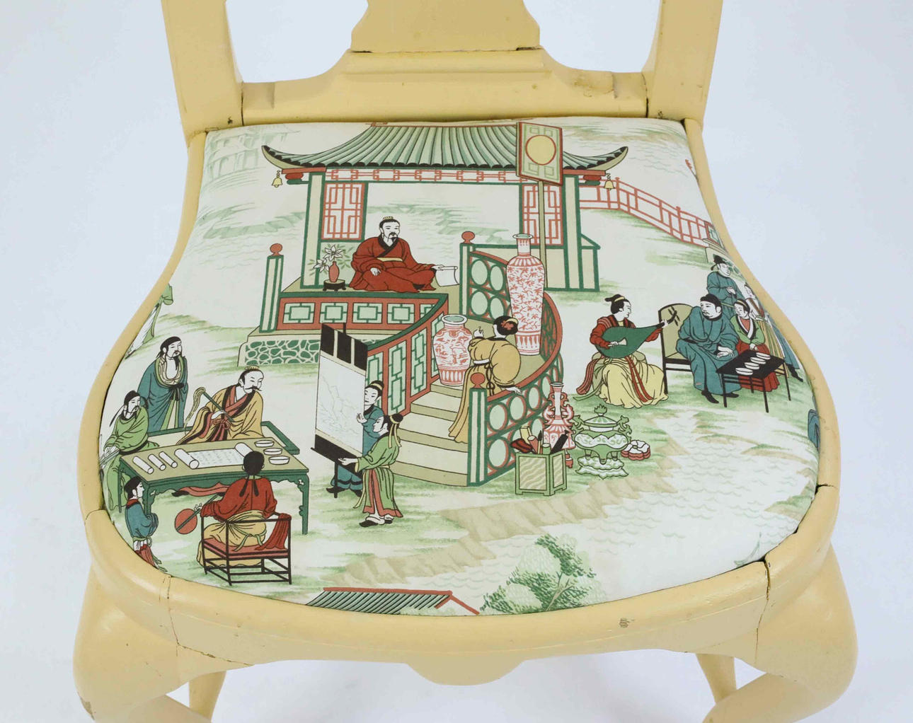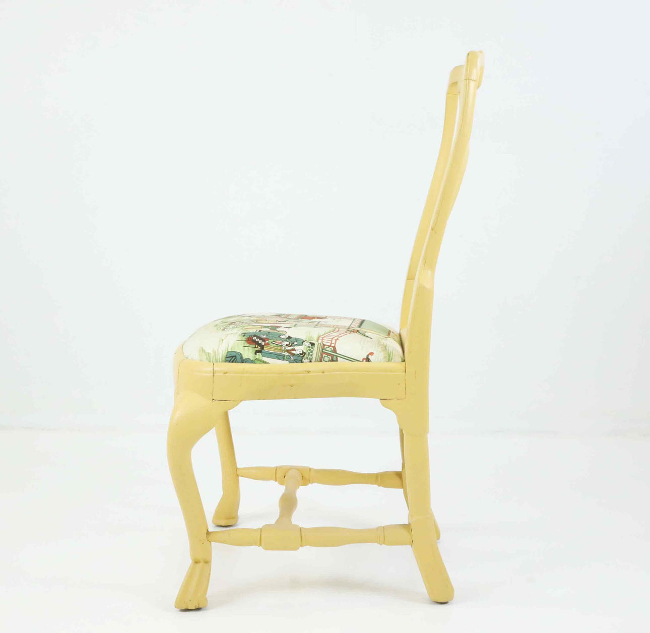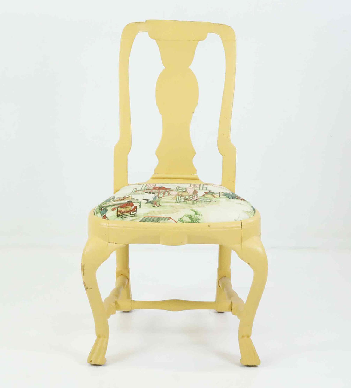 Usage and age-related wear. Marks, cracks, paint chafing, newly made seat with new upholstery, painted later.