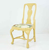 Baluster-shaped back tray, pivoted connected legs, upholstered and upholstered seat.