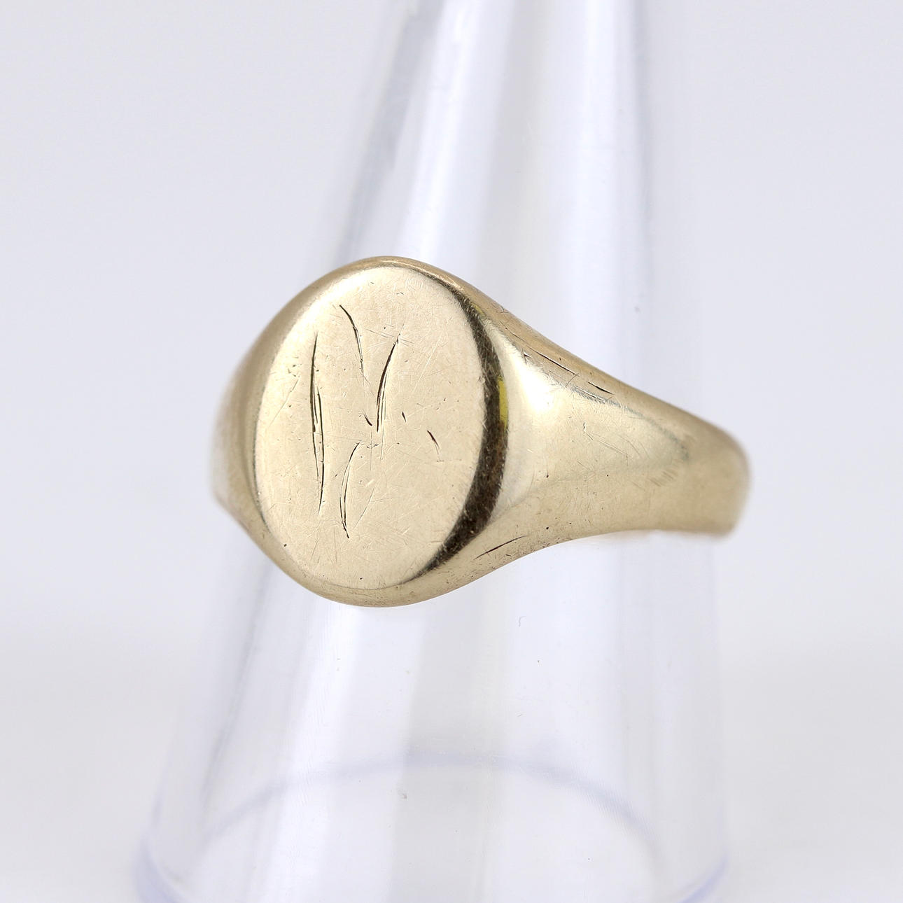 A hallmarked 9ct gold signet ring. UK ring size T.