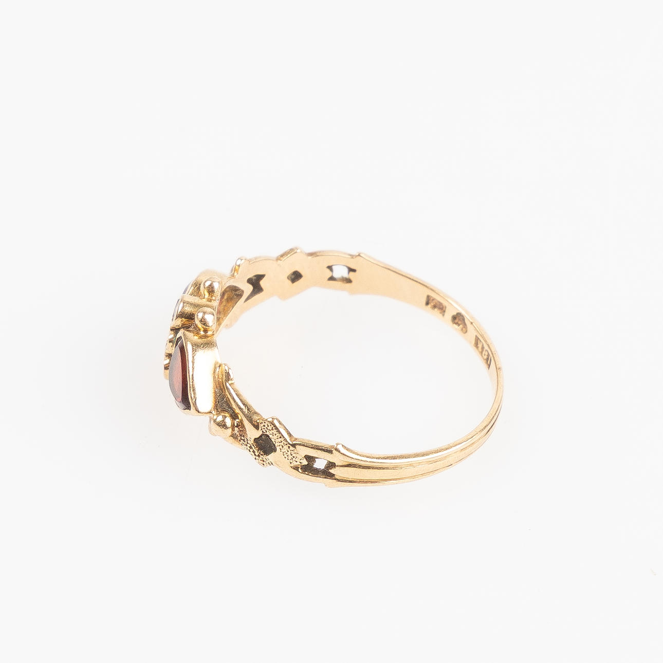 Framed with garnets and small beads. Ringstrl. about 17.75 mm. Weight about 2.1 grams.
