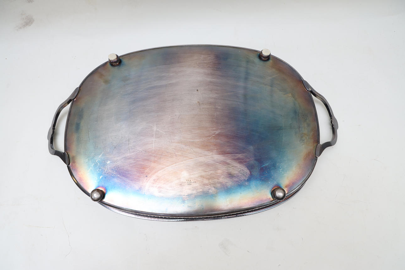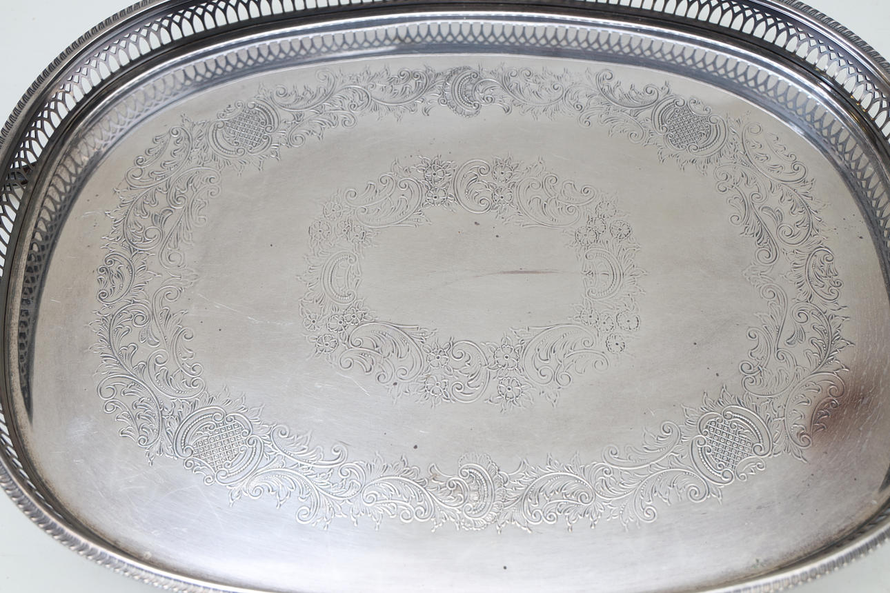 With relief decor, with openwork sarg. Double handles. Stamped.