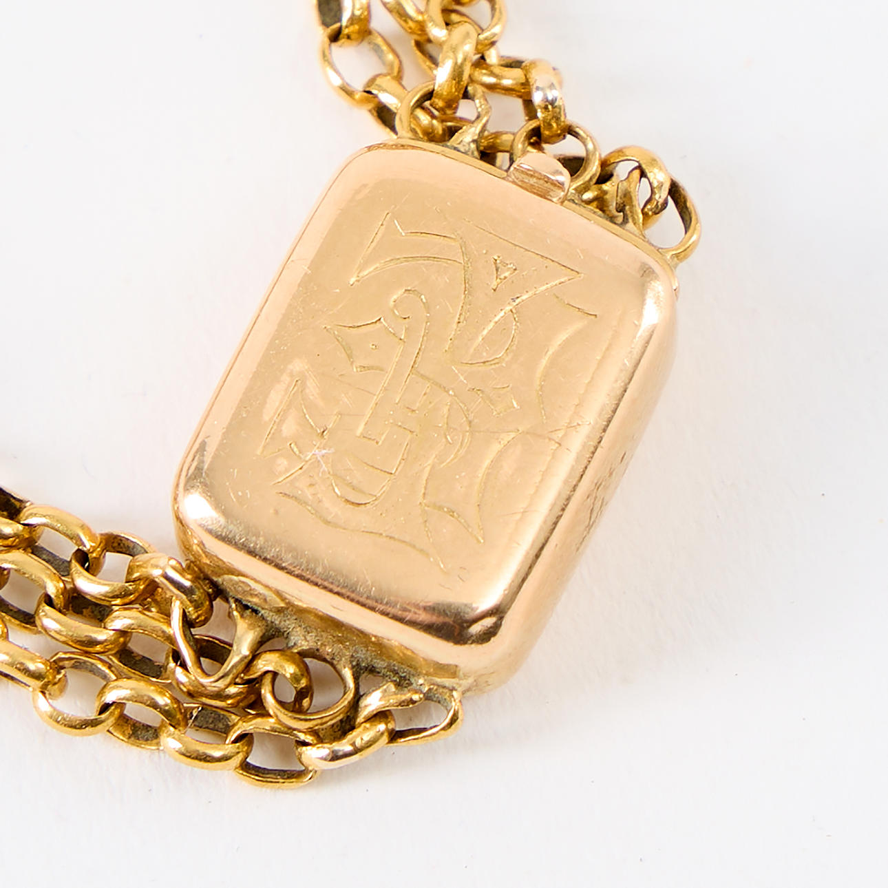 Probably remade watch chain, Lock with monogram. L. 16.5 cm. Weight 16 grams.