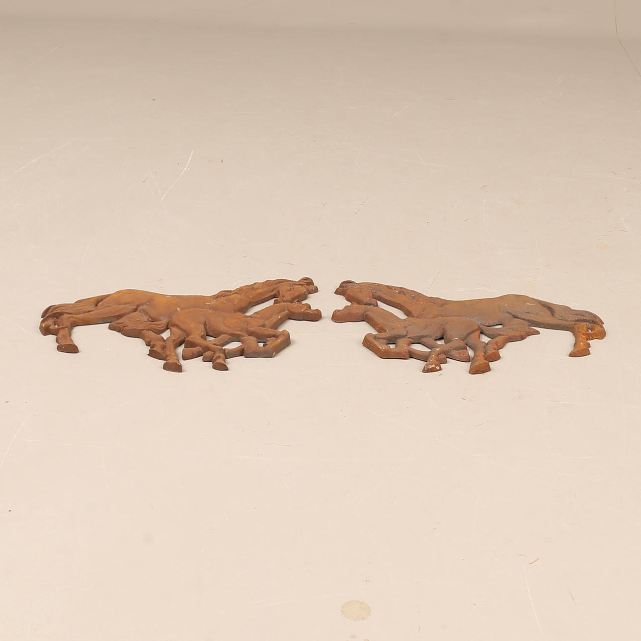 4881581. WALL DECORATIONS, 2 pieces, horses, cast iron.