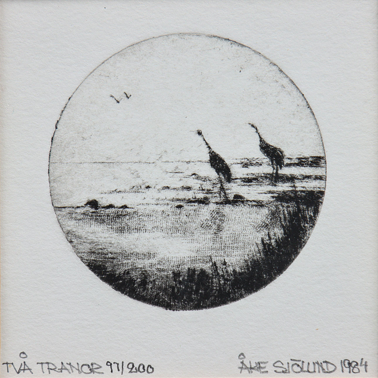 ÅKE SJÖLUND “TWO CRANES” ETCHING 97/200, SIGNED, DATED 1984.