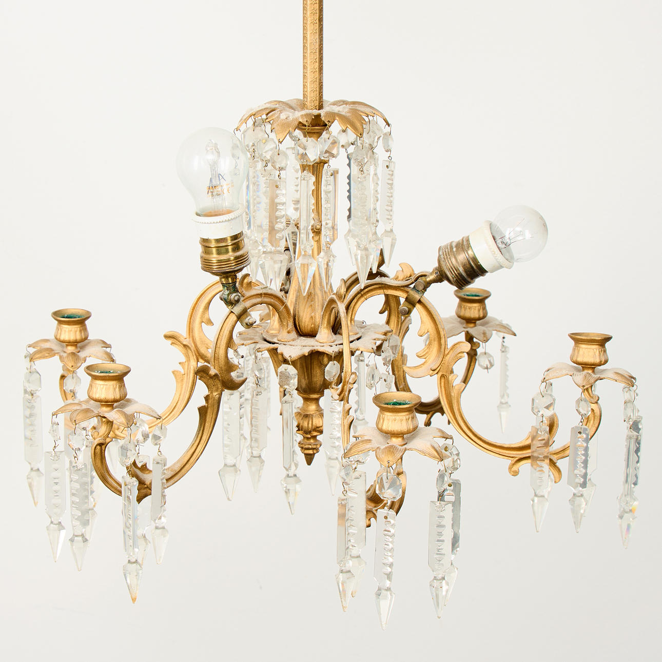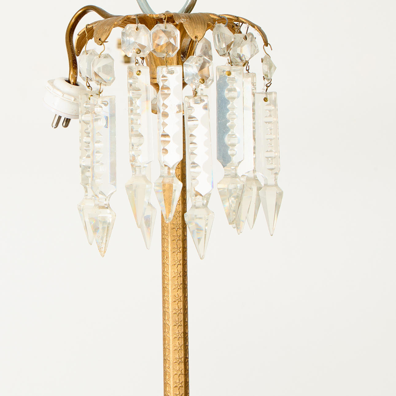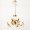 For six candles and three light points, metal frame with cut prisms, Ø 50 cm, H 70 cm.
