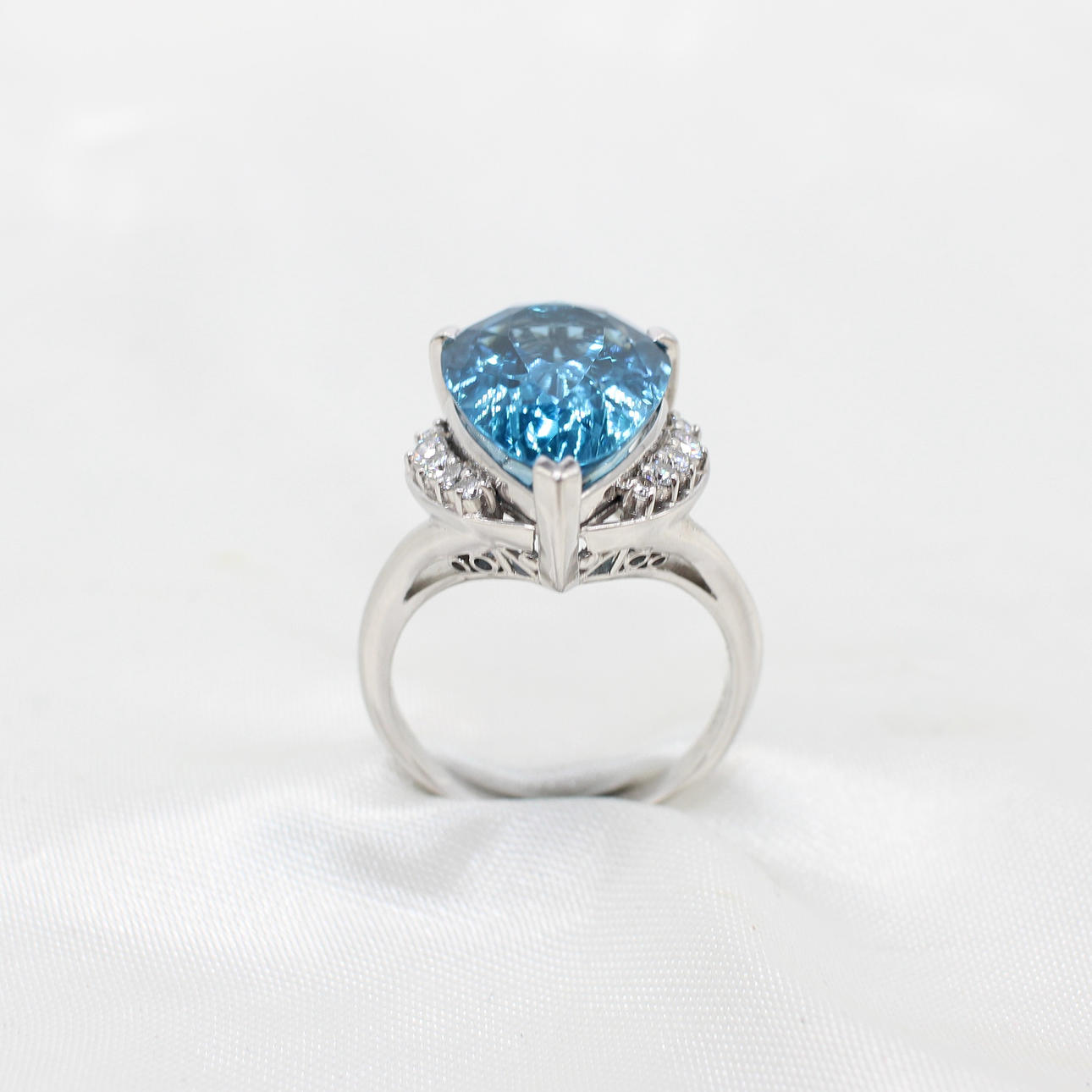 This Exceptional Ring Is Set With A Large, Pear Mixed Cut Natural Topaz And Round Brilliant Cut VS Quality Diamonds.