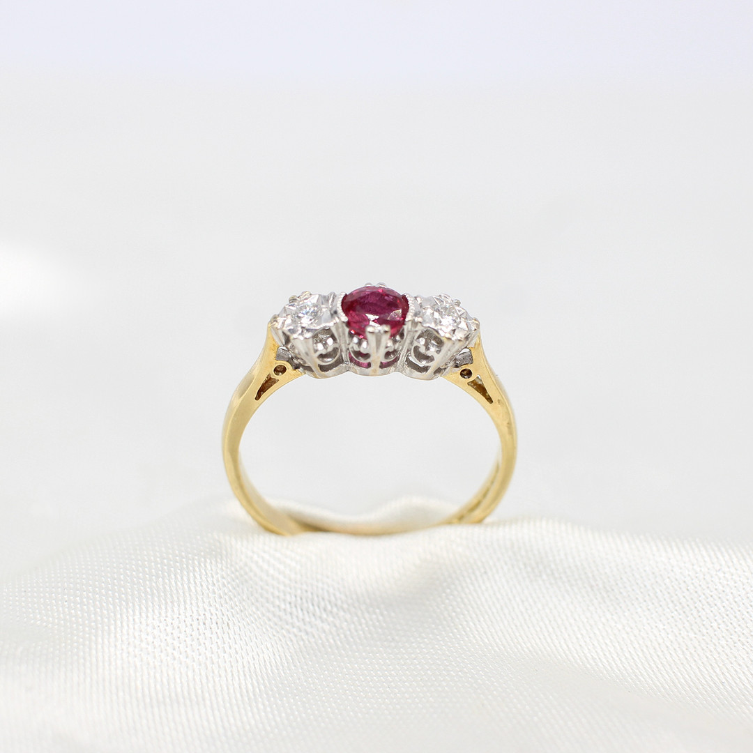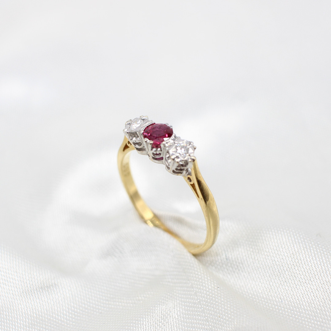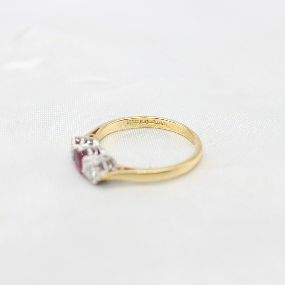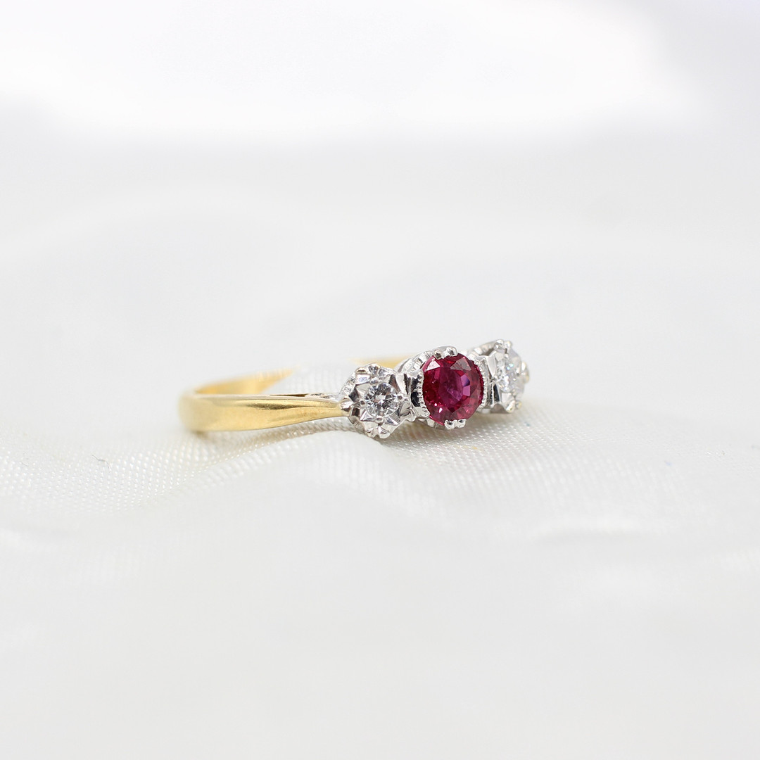 4882425. RUBY & DIAMOND TRILOGY RING 18K.