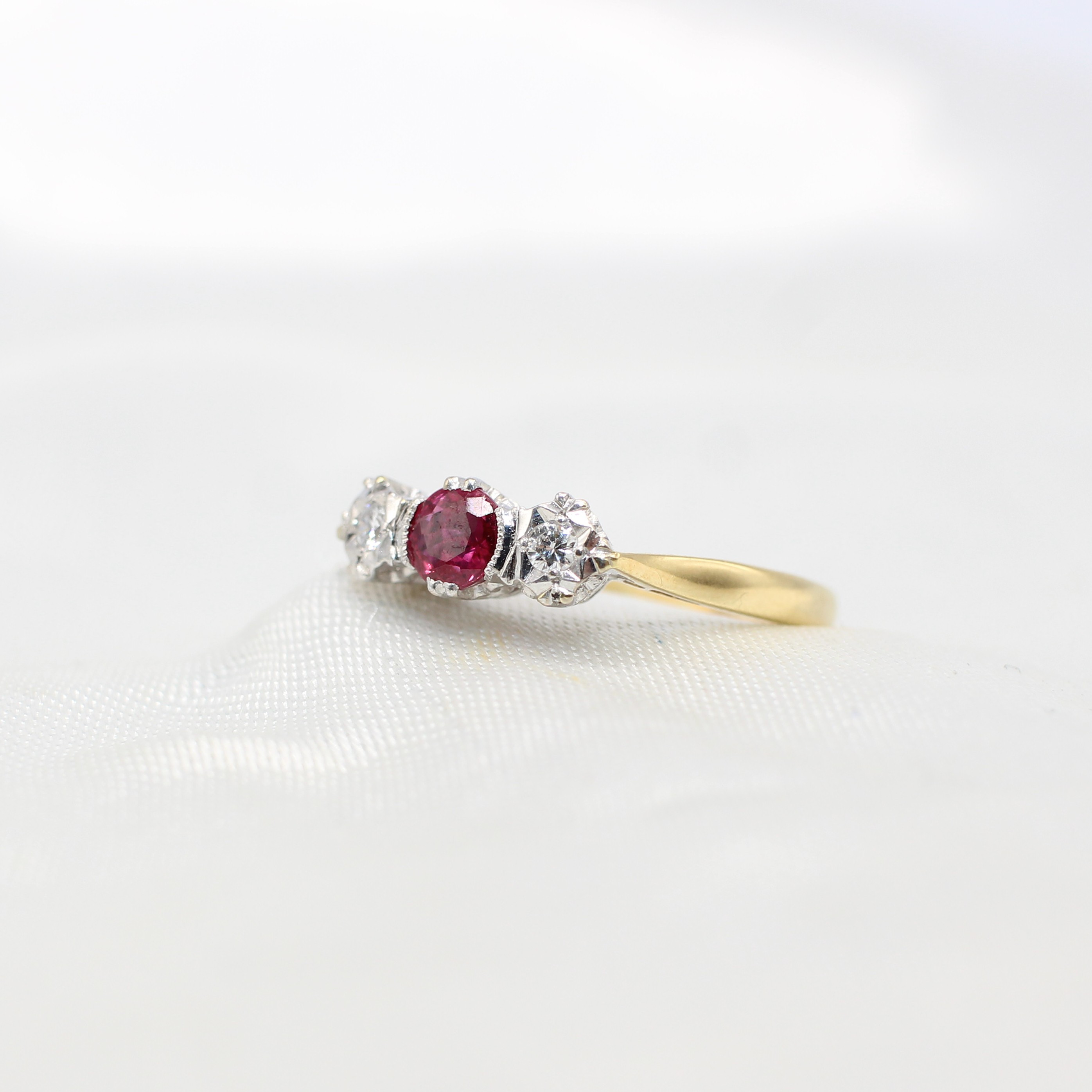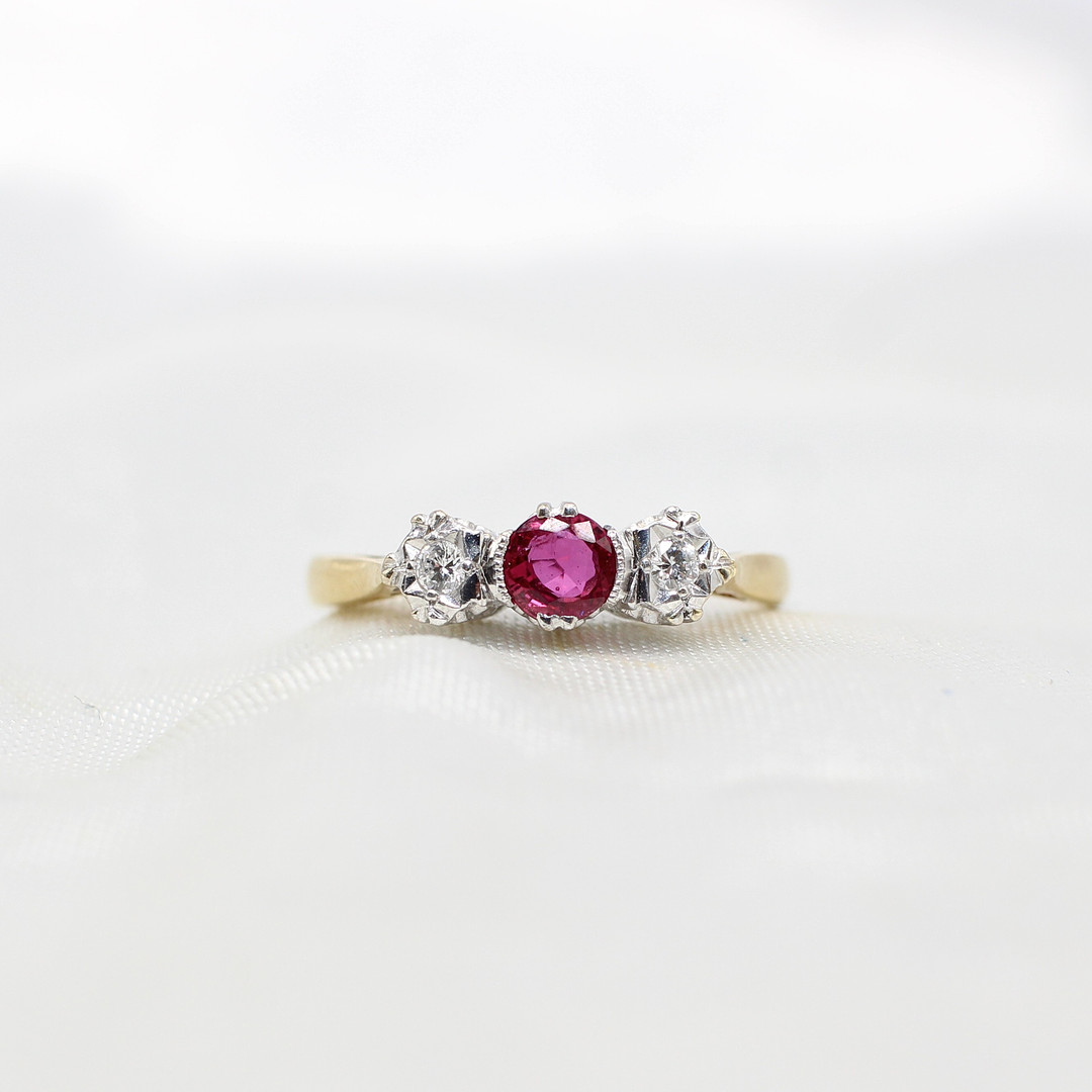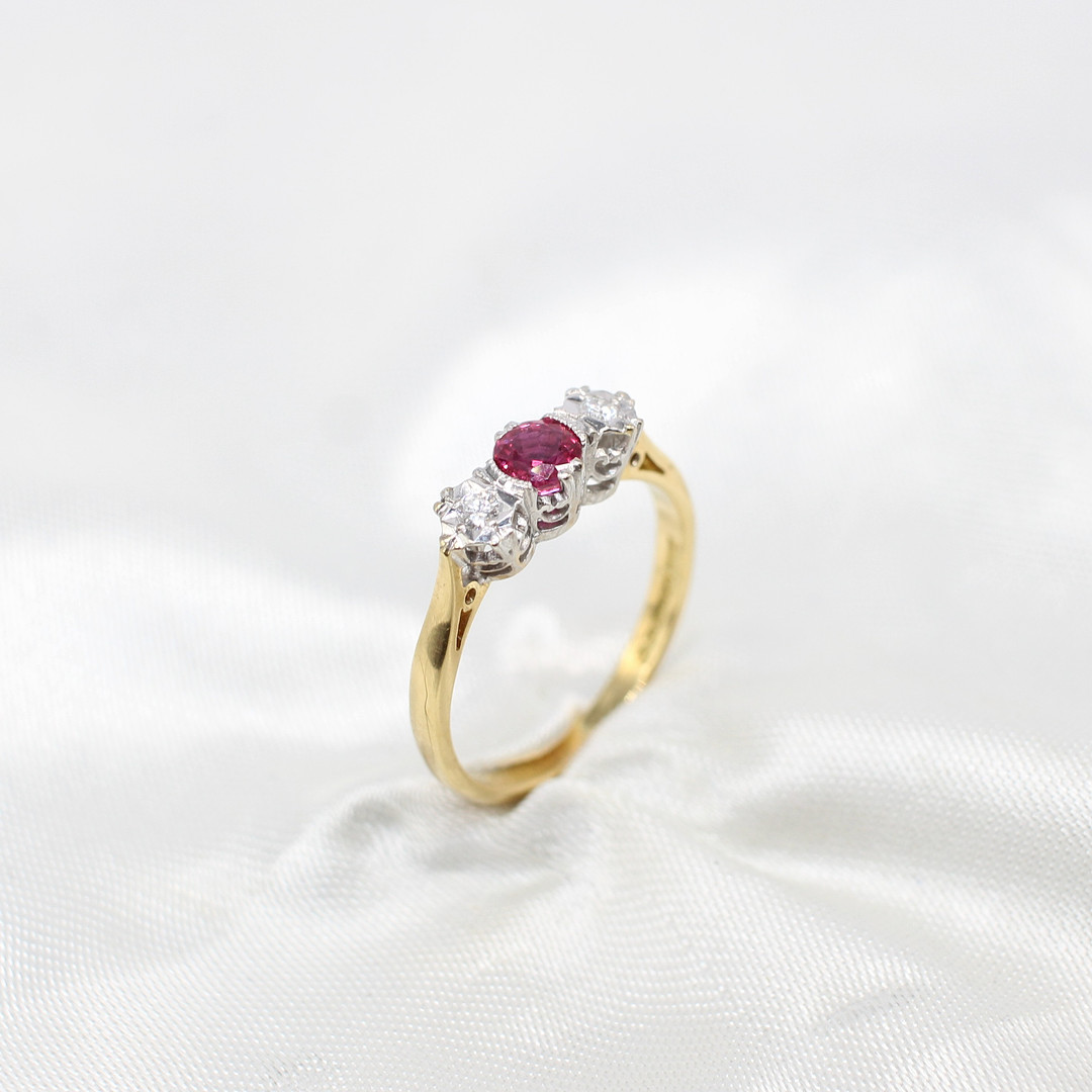 4882425. RUBY & DIAMOND TRILOGY RING 18K.