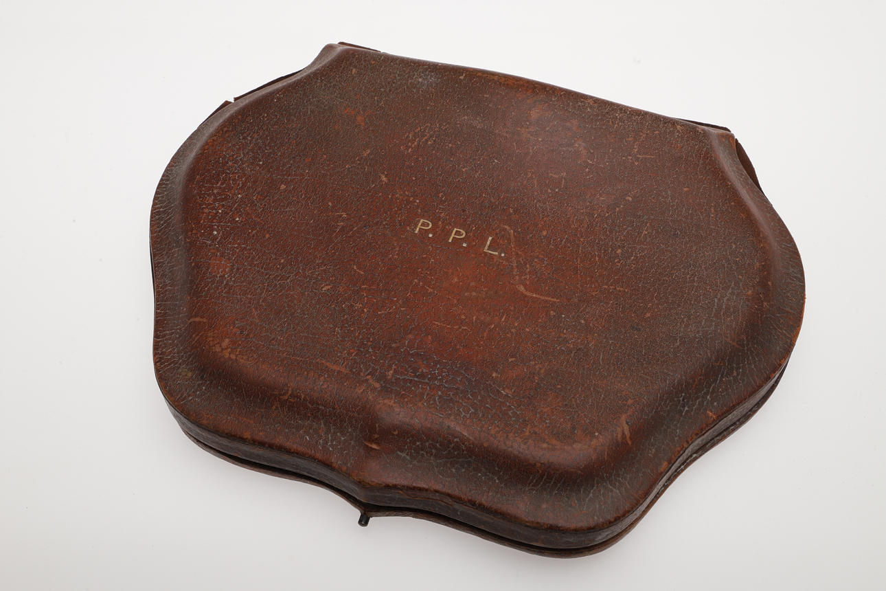 The part set presented in a fitted lined shaped case, with initials P.P.L to the lid. The silver with a hammered finish. Hallmarked for George Unite & Sons, Birmingham, 1938. Case measures 26.5cm x 20.5cm.
