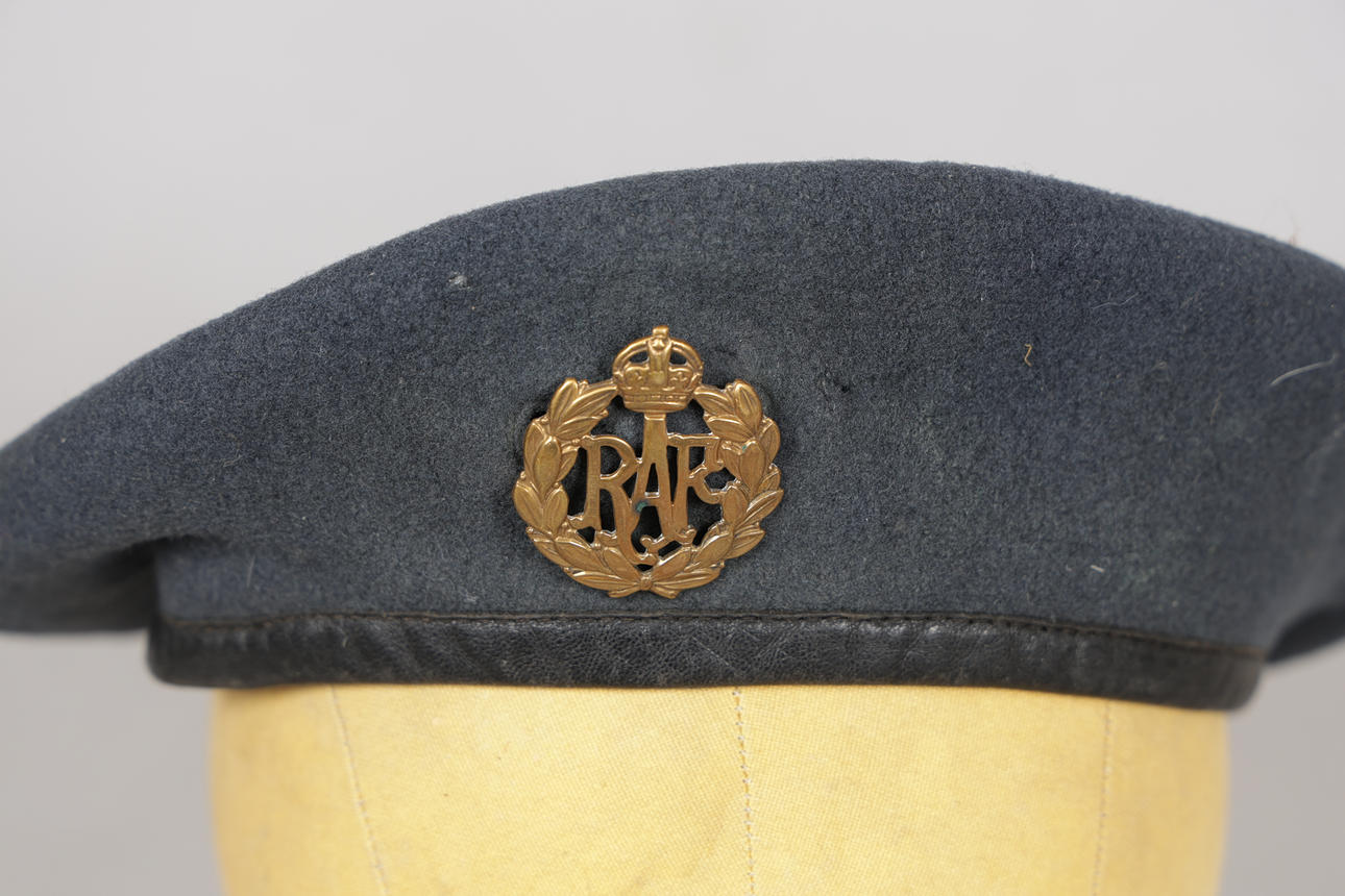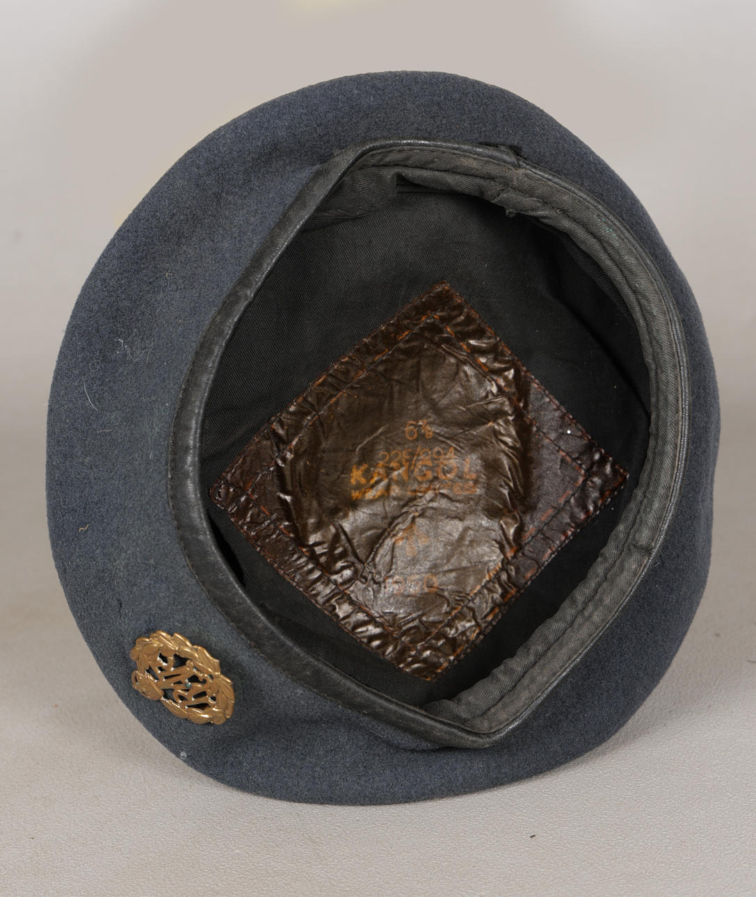 Applied with King Crown R.A.F cap badge, labelled 'Kangol 1950'.