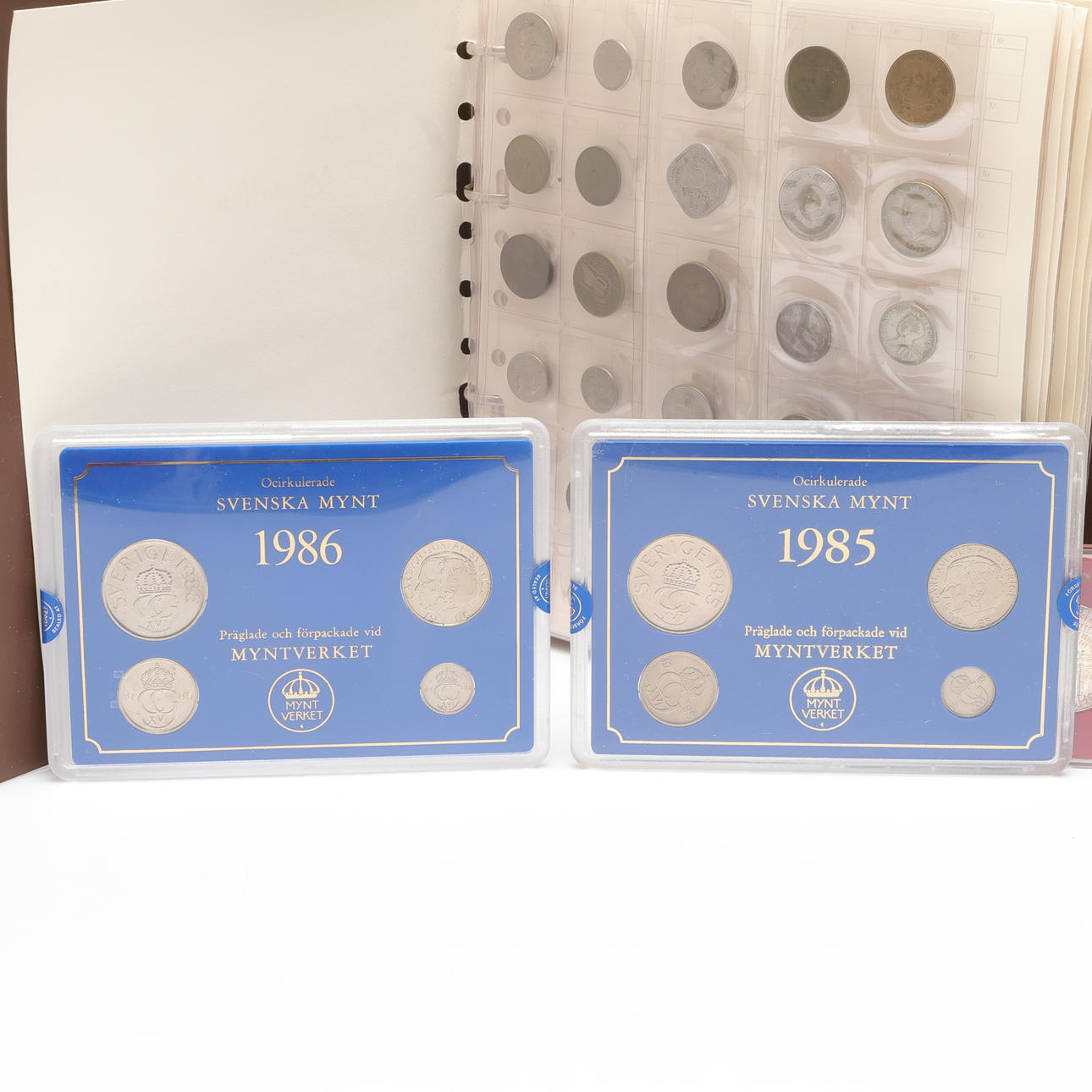 Coin, among others, in albums. Sweden, China, USA etc.