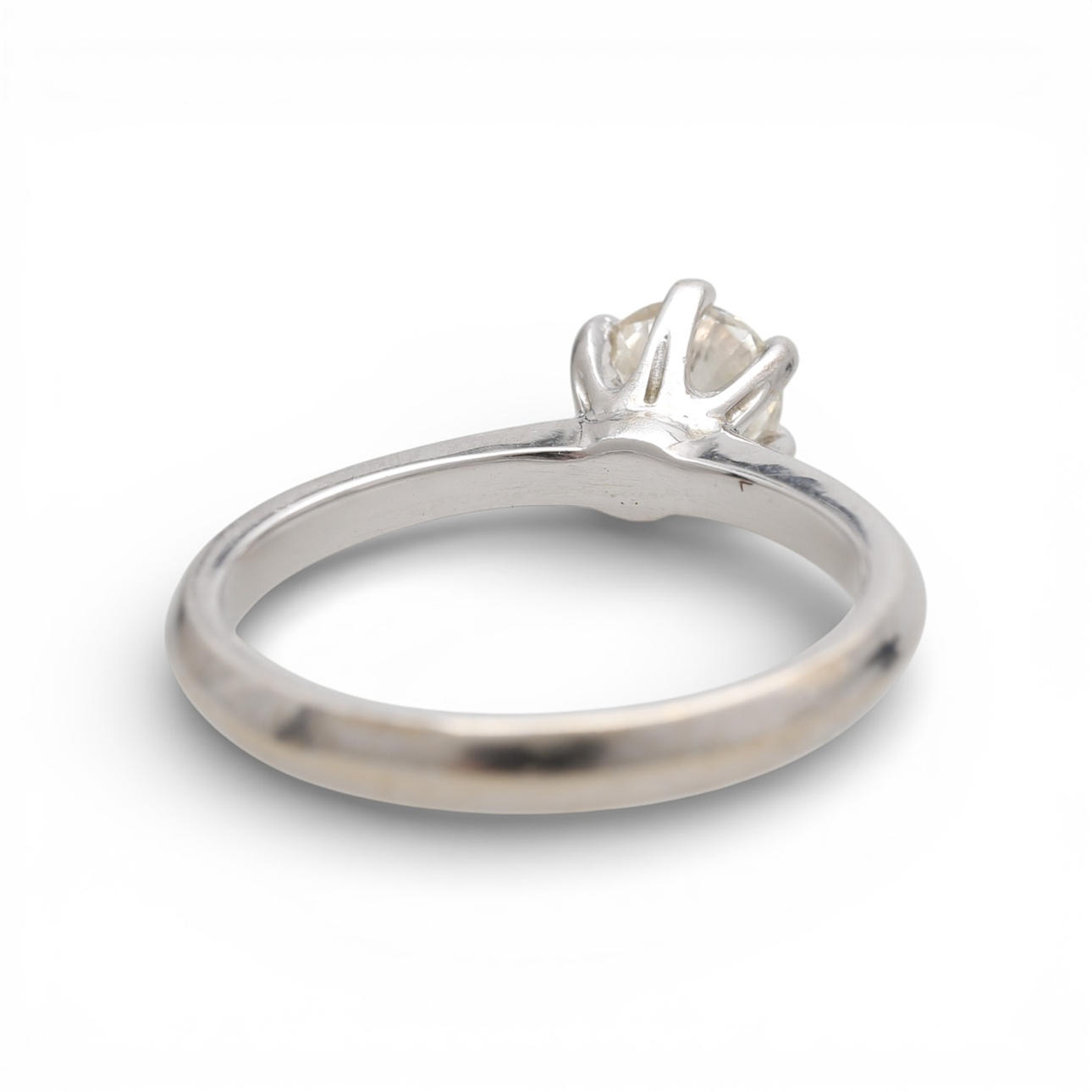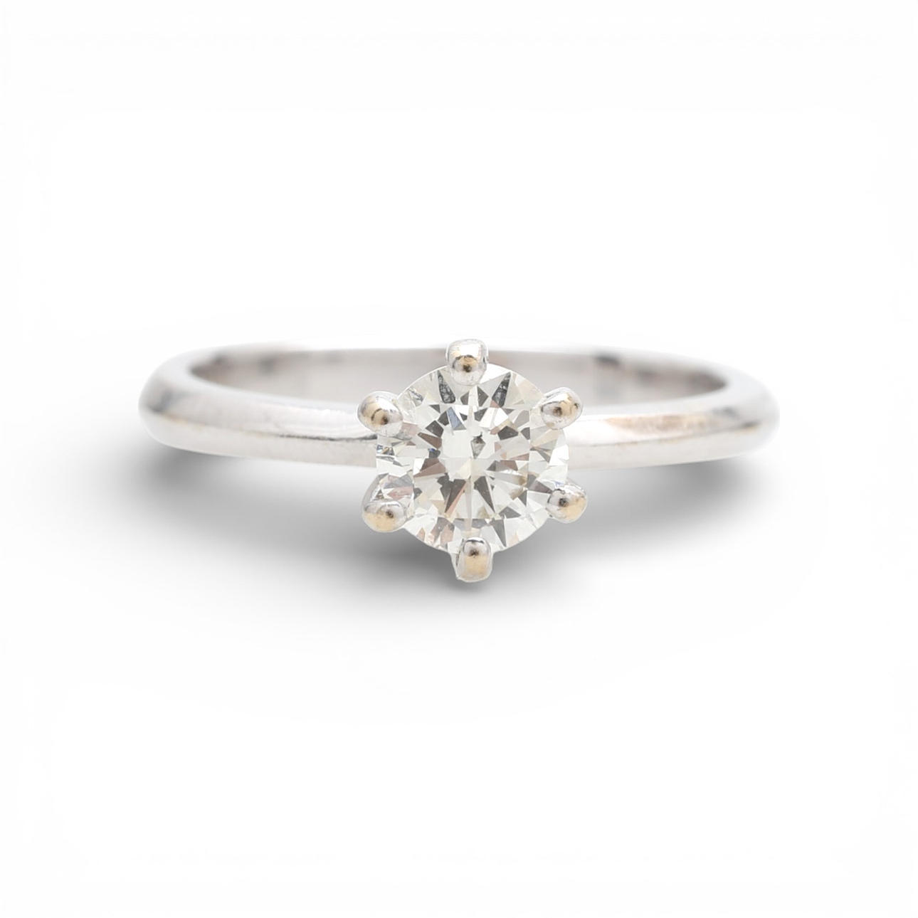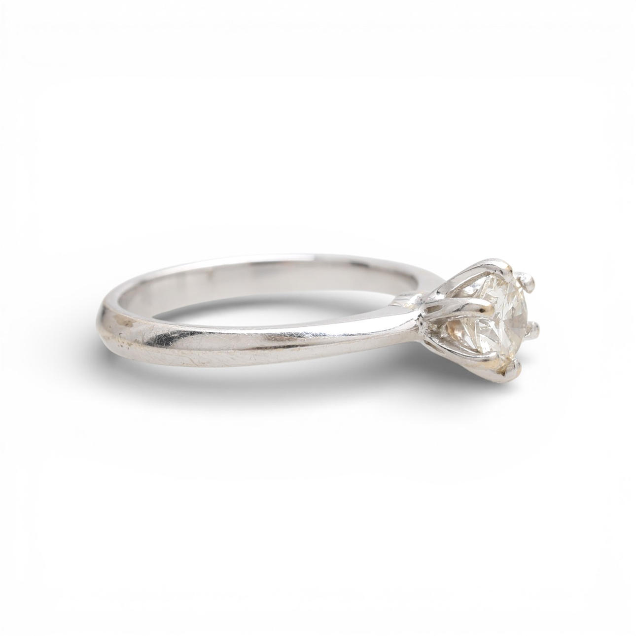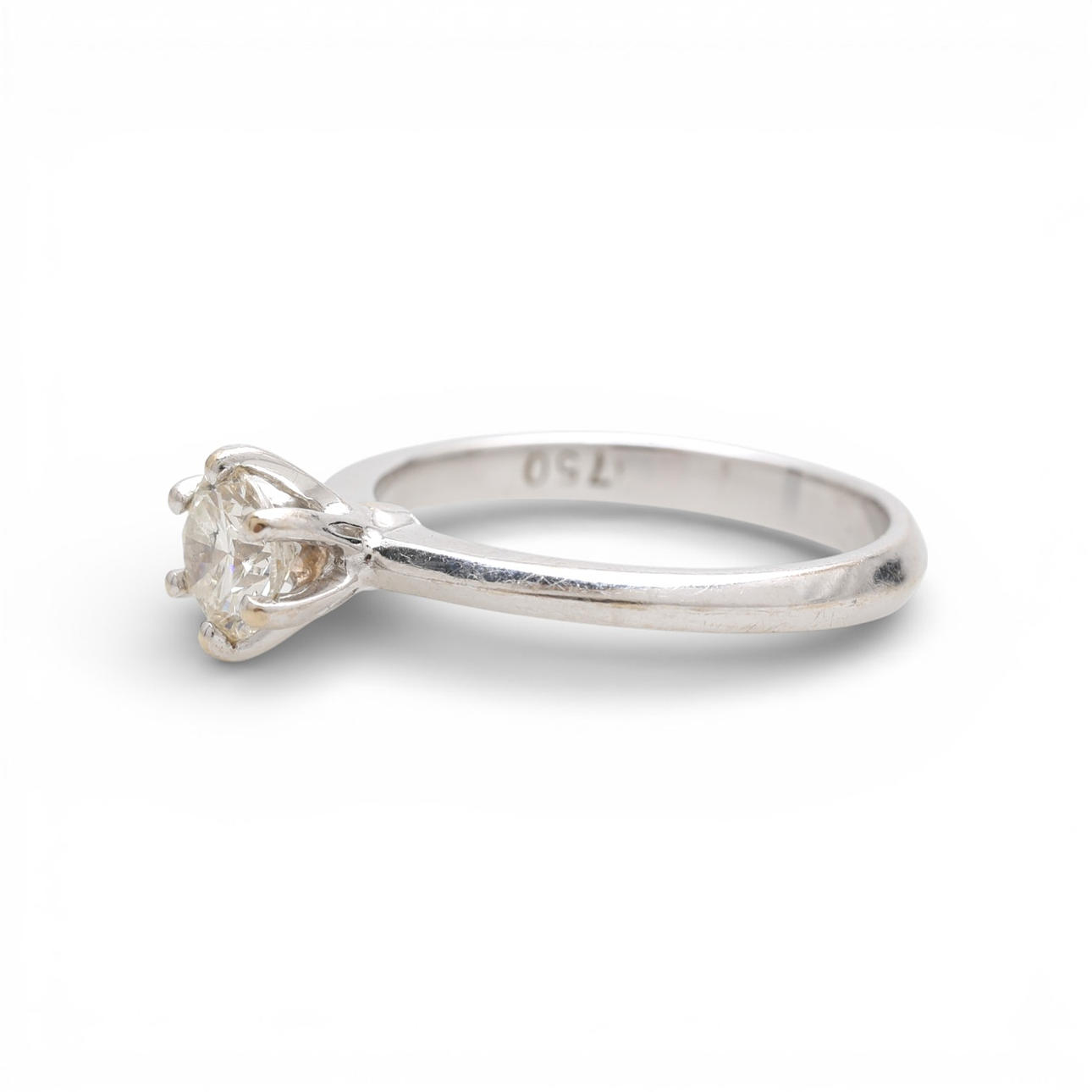 18K white gold and a brilliant cut diamond, approx. 0.58 cts. Size 12/52. 3.4 gr.