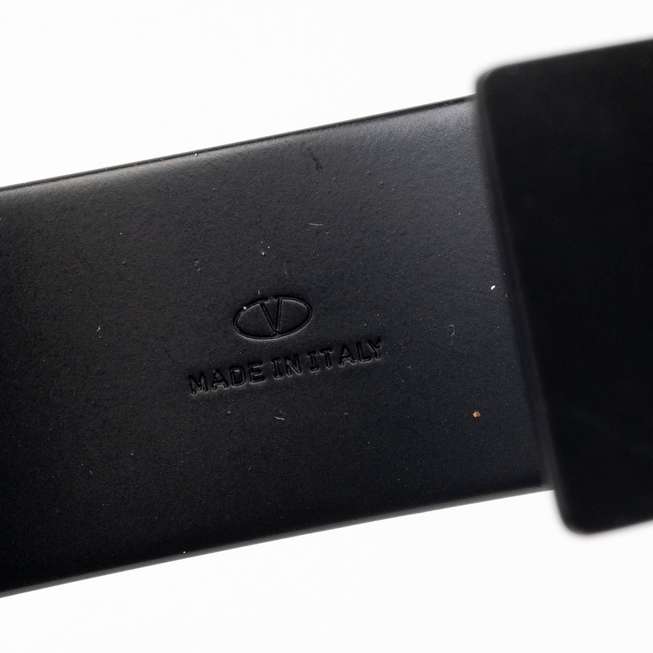 Valentino in black metal with printed white letters “VLTN”, oval approx. 6 cm.
