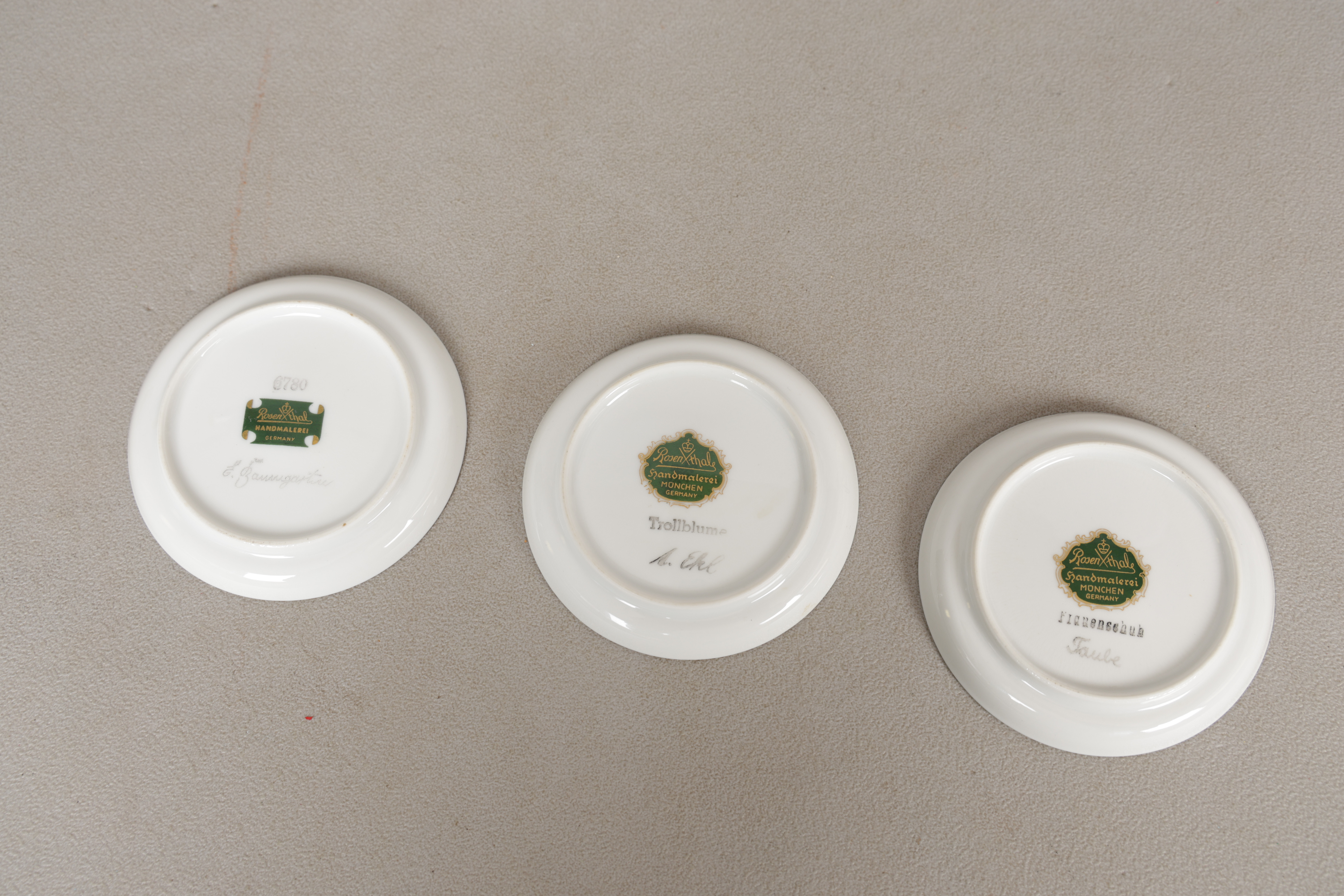 4884525. THREE ROSENTHAL HAND PAINTED SIDE PLATES (3).