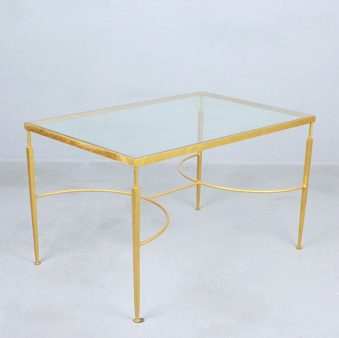 Coffee table/coffee table, painted metal construction, glass table top, Dimensions approx.: h 55 cm, w 91 cm, depth 61 cm.