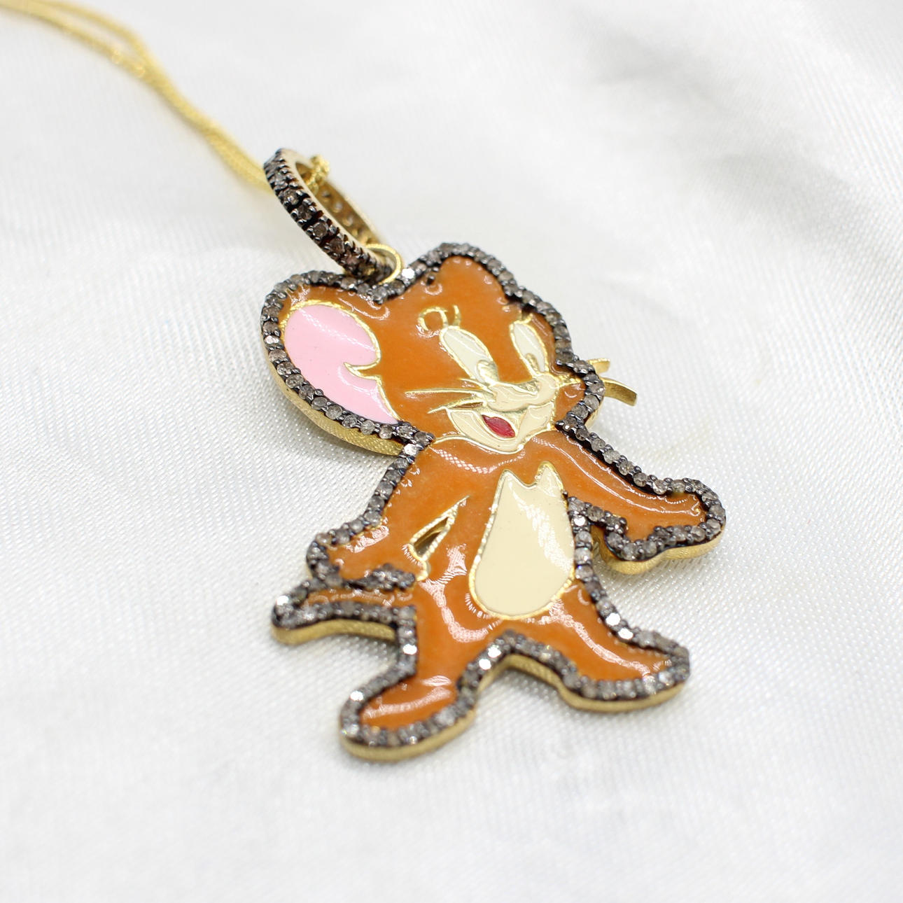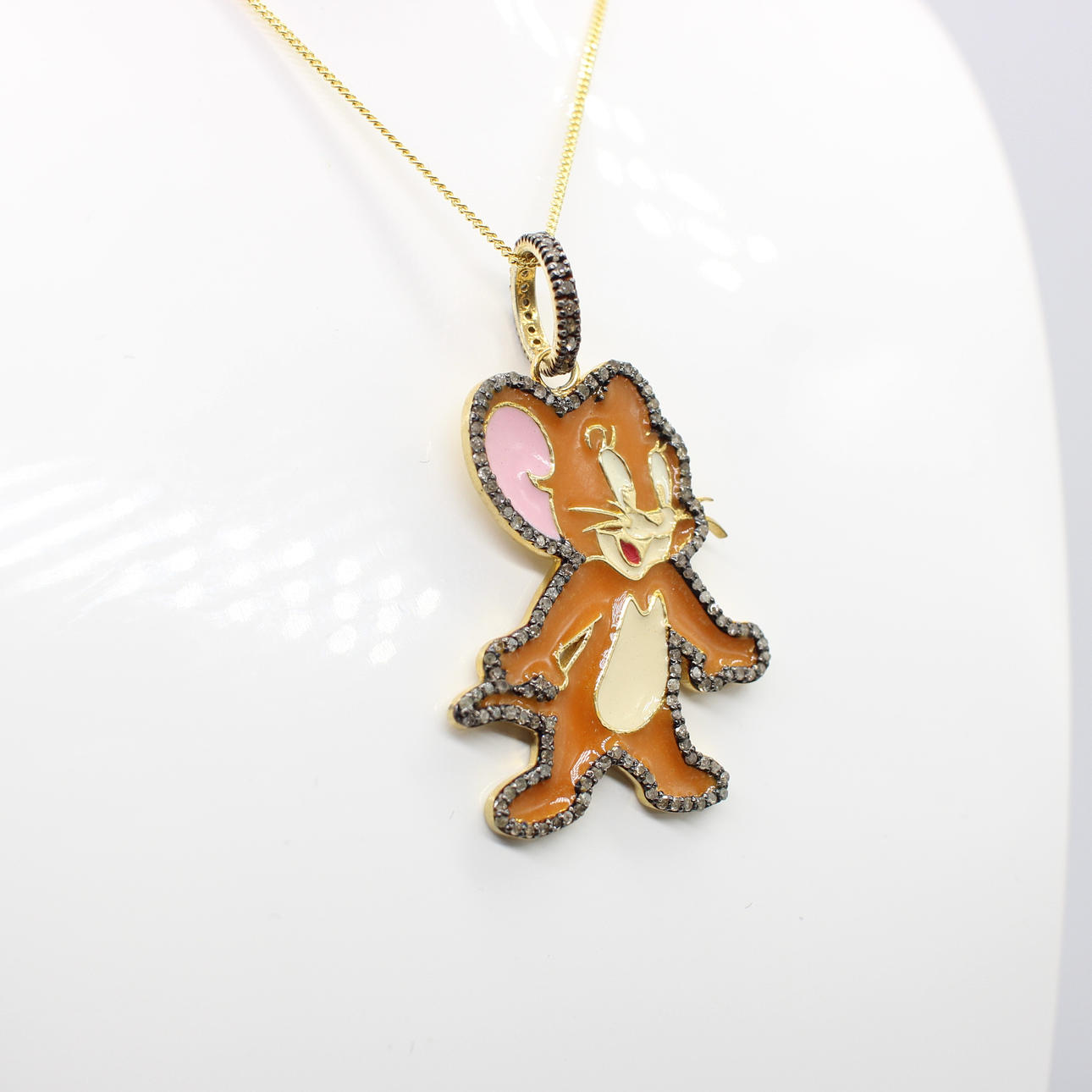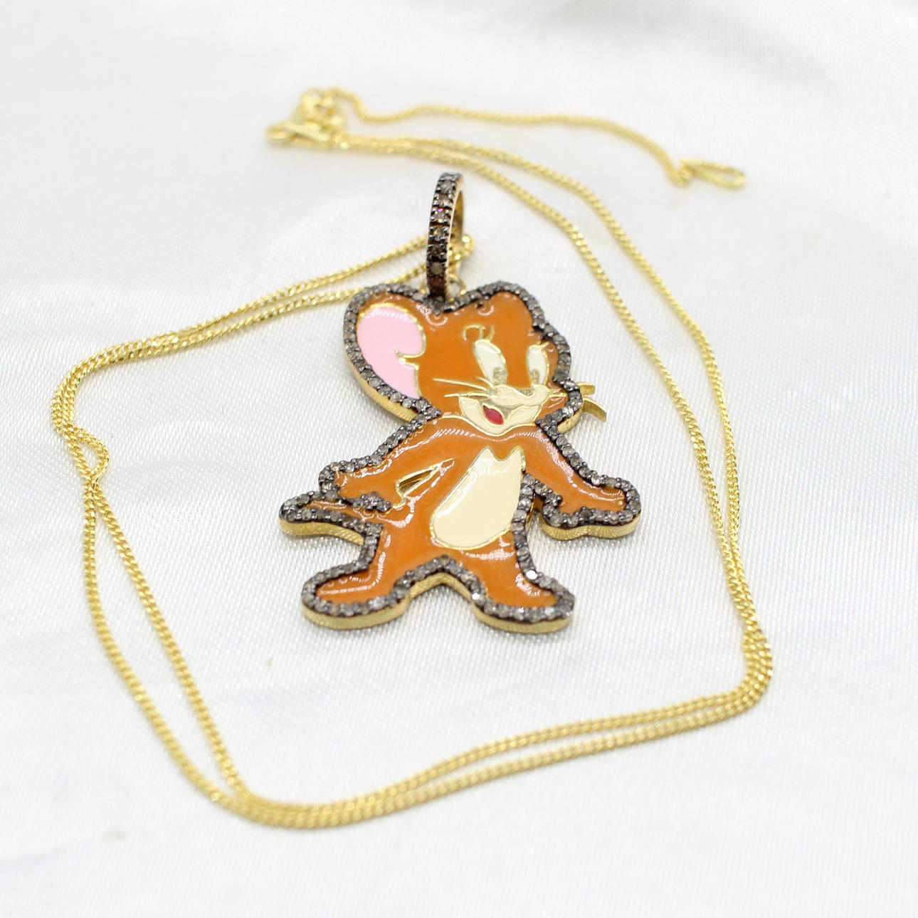 Pendant Is Finished In Coloured Enamel With Diamond Set Surround And Bale And Is Hung On A Gold Plated Silver Chain.